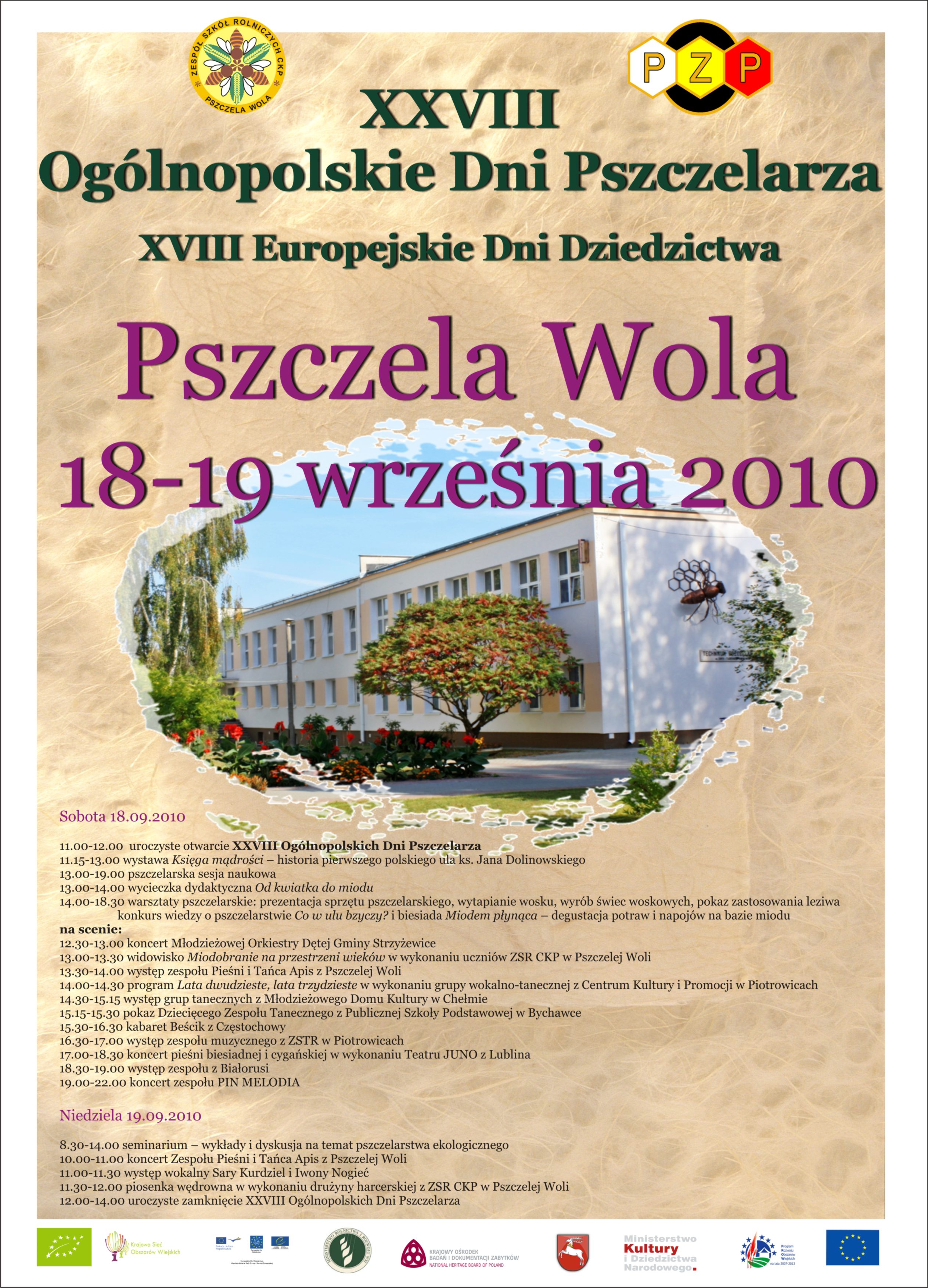 W dniach 17-19 września 2010 odbyły się w Pszczelej Woli XXVIII Ogólnopolskie Dni Pszczelarza połączone z XVIII Europejskimi Dniami Dziedzictwa. Uczestniczyli w nich pszczelarze i miłośnicy miodu z Polski i zagranicy. Najbardziej zasłużeni zostali odznaczeni medalem Dzierżona. Pszczelowolskiego świętu towarzyszyły występy zespołów młodzieżowych, koncerty, konkursy, degustacje, a także konferencja naukowa.