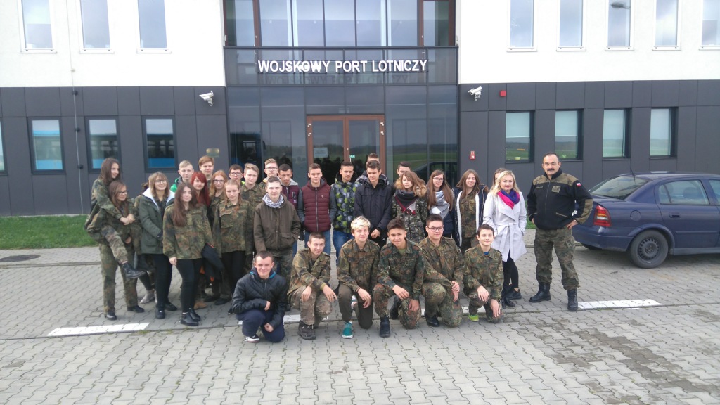 24.10.2017 uczniowie klasy wojskowej (ze wsparciem uczniów z klas trzecich gimnazjum) odwiedzili 41. Bazę Lotnictwa Szkolnego w Dęblinie. Wyjazd był efektem nawiązanej niedawno współpracy naszej placówki z Jednostką Wojsk Lotniczych. Przy okazji zwiedzono Muzeum Sił Powietrznych, którego najważniejszą misją jest upowszechnianie wartości historycznych związanych z dziejami oręża polskiego, w szczególności z historią i tradycją sił powietrznych, broni przeciwlotniczej, popularyzacja wiedzy o polskiej historii wojskowości oraz promowanie Sił Zbrojnych Rzeczypospolitej Polskiej.