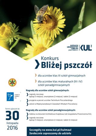 Celem konkursu "Bliżej pszczół" jest popularyzacja wśród uczniów szkół gimnazjalnych i ponadgimnazjalnych roli pszczoły miodnej w środowisku naturalnym oraz wiedzy odnośnie możliwości funkcjonowania pszczoły miodnej w industrialnej rzeczywistości. Ponadto zachęcenie młodych ludzi do obserwowania życia pszczół i ich zwyczajów, zaczerpnięcia wiedzy na temat roślin miododajnych i pszczelarstwa oraz uświadomienia młodzieży znaczenia produktów pszczelich dla zdrowia człowieka.