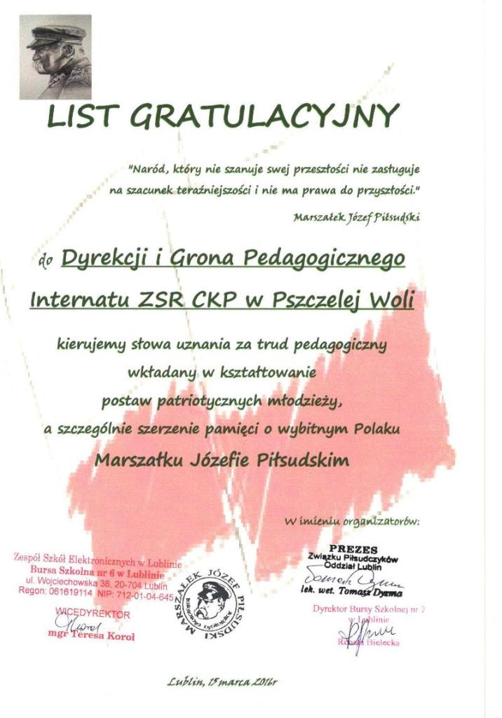 15 marca bieżącego roku odbyła się kolejna edycja konkursu wiedzy o Marszałku Józefie Piłsudskim dla burs i internatów pod hasłem: