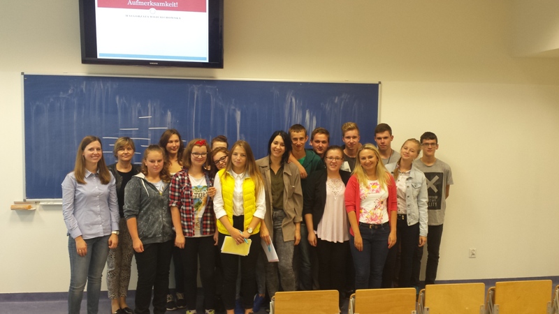 23. 09.2015 uczniowie naszej szkoły wzięli udział w warsztatach z języka niemieckiego pt. "Deutsch in Deutschland, Österreich und in der Schweiz", organizowanych przez Wyższą Szkołę Ekonomii i Innowacji w Lublinie w ramach Festiwalu Nauki.