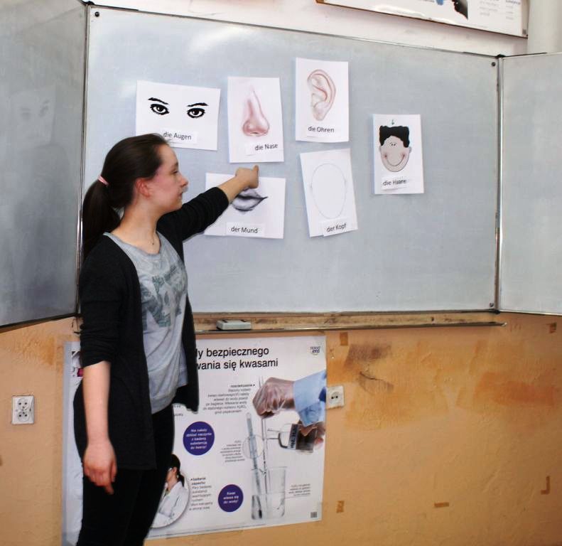 Czy język niemiecki może być przyjemny? Czy można uczyć się bawiąc? Na to pytanie, pod okiem nauczycielki j. niemieckiego p. Mileny Daniel, odpowiedzi poszukiwały uczennice klasy II a i b gimnazjum – Dominika Brygoła, Marta Wachowska, Katarzyna Wójcik, Aleksandra Chwała.
