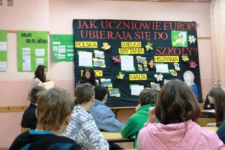 9 grudnia 2011 na 3 godzinie lekcyjnej w sali nr 14 odbyła się prezentacja podsumowująca projekt pt. ,,Jak uczniowie w krajach europejskich ubierają się do szkoły?” . W projekcie brali udział uczniowie klasy II a gimnazjum. Projekt miał na celu zapoznanie się z kulturą oraz tradycją wybranych krajów europejskich w kontekście mody szkolnej.