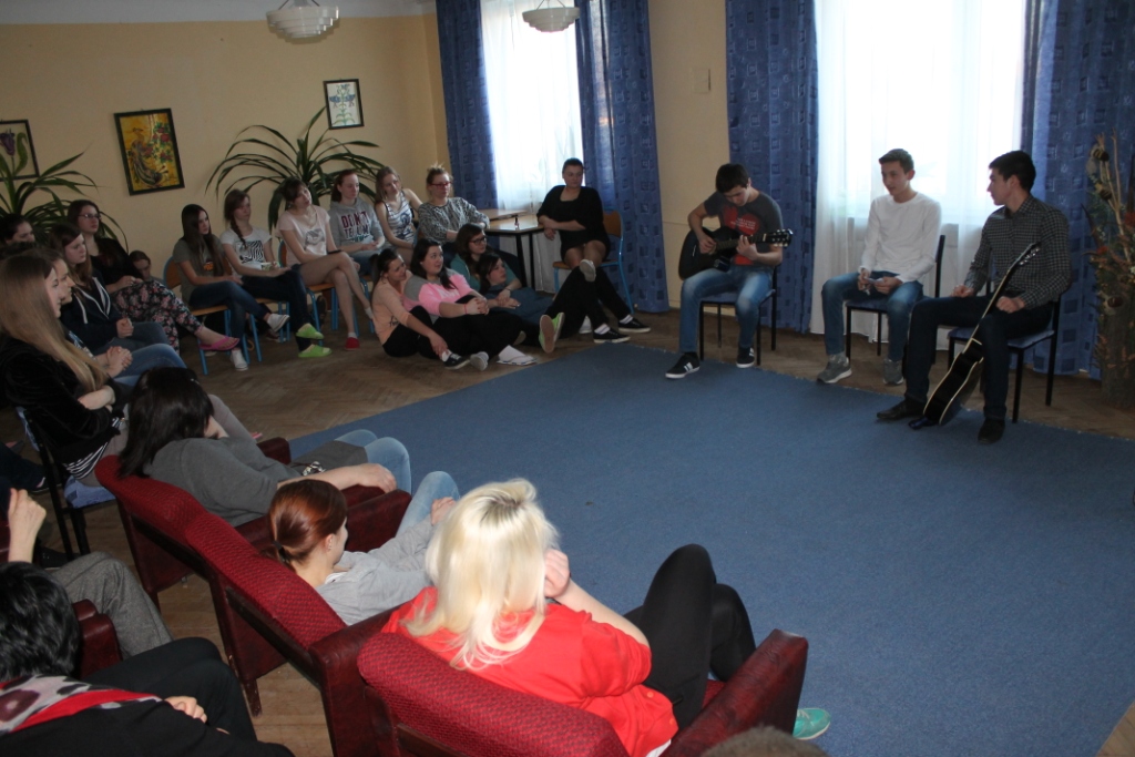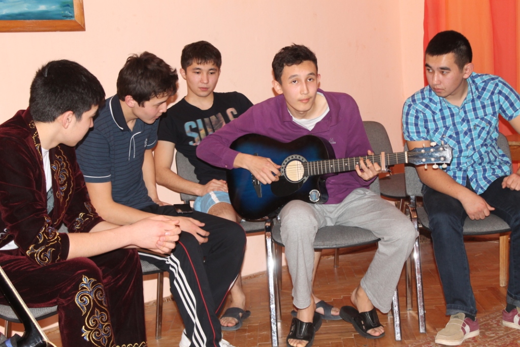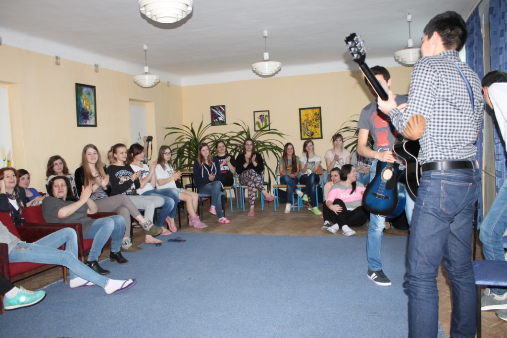 Wczesnym popołudniem w poniedziałek 9 marca chłopcy z Kazachstanu zaprosili swoje koleżanki na przygotowaną dla nich niespodziankę. Tuż po 16.00 świetlica w żeńskiej części internatu wypełniła się gwarem dziewczęcych głosów. Po chwili na salę weszli chłopcy Alisher Seiten, Akmergen Temirbekov i Koblandy Khaki. Z okazji Międzynarodowego Dnia Kobiet, złożyli serdeczne życzenia wszystkim obecnym i rozpoczęli swój występ. Przy akompaniamencie gitar zaśpiewali kilka piosenek. Ogromne wrażenie na obecnych zrobiły pięknie zaśpiewane w języku kazachskim piosenki o miłości nagradzane gromkimi brawami przez słuchaczki. Spory aplauz zyskali wykonawcy za następną piosenkę tym razem w rosyjskiej wersji językowej. Niektóre z dziewcząt miały wrażenie, że artysta gra i śpiewa tylko dla niej. Kolejny utwór poprzedziła zapowiedź Alishera, który wyjaśnił, że kazachskie słowa piosenki mówią o miłości i tęsknocie do mamy. Każdy kolejny występ nagradzany był rzęsistymi brawami przez słuchaczki. Wiązanka melodii ze znanych filmów między innymi „Ojciec chrzestny’, „Piraci z Karaibów” itp. zakończyła koncert. Długo po ostatnich akordach wybrzmiewała owacja zachwyconej publiczności. Na kilku fotografiach prezentujemy fragmenty koncertu niespodzianki.