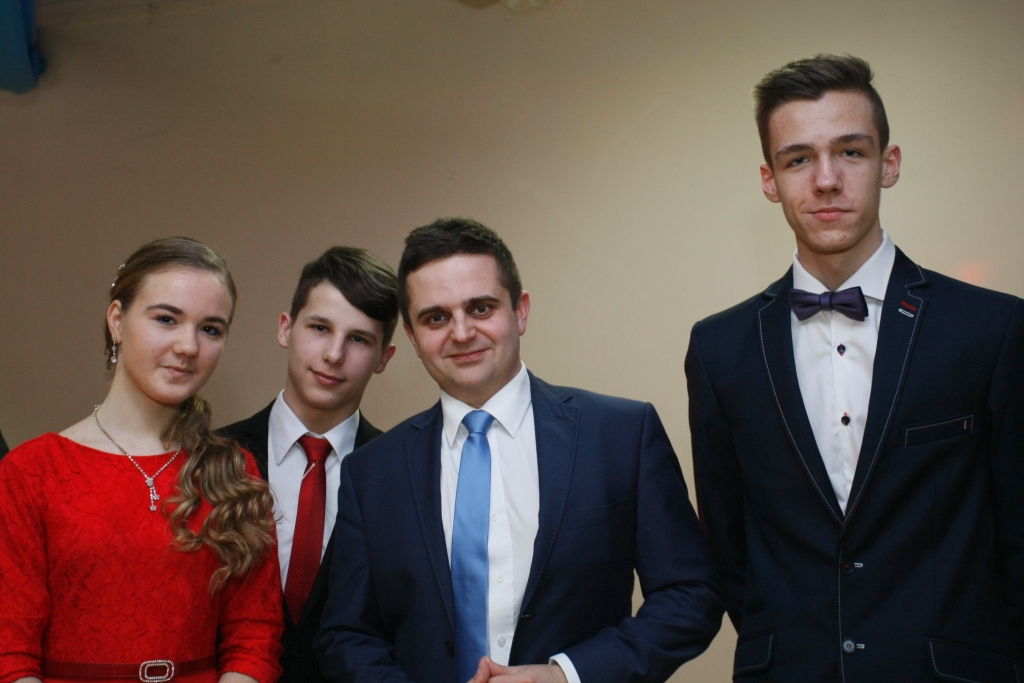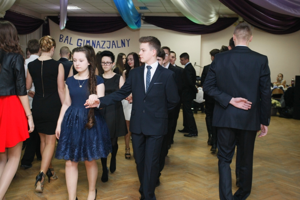 W sobotni wieczór, 30 stycznia 2016 roku, odbył się w naszej szkole długo wyczekiwany przez uczniów klas III Bal Gimnazjalny. Prowadzący część oficjalną, Katarzyna Wójcik z klasy III a gimnazjum i Damian Tryk z klasy III b, serdecznie powitali wszystkich zgromadzonych słowami: "„Ta chwila czarowna głębią nocy, szaleństwem fioletu, srebra bladym świtem niech zawsze trwa...”Bal rozpoczął się staropolskim tańcem - polonezem, a w jego podniosłą atmosferę wprowadziły nas słowa Adama Mickiewicza. Na takie chwile warto czekać ...