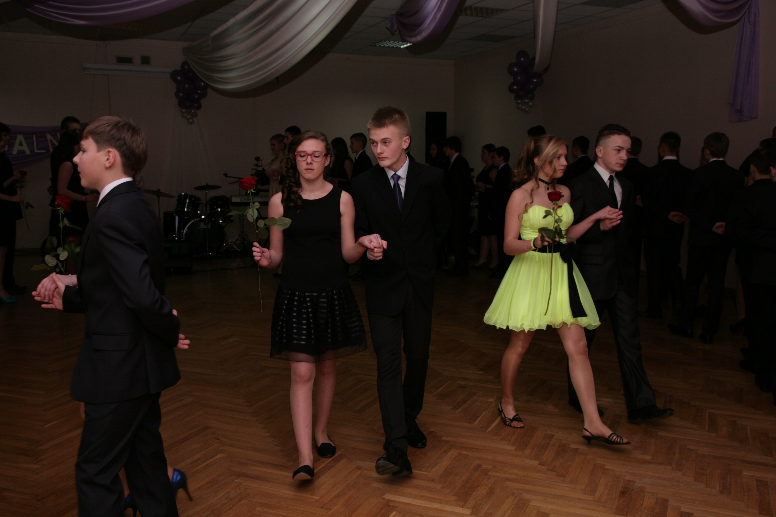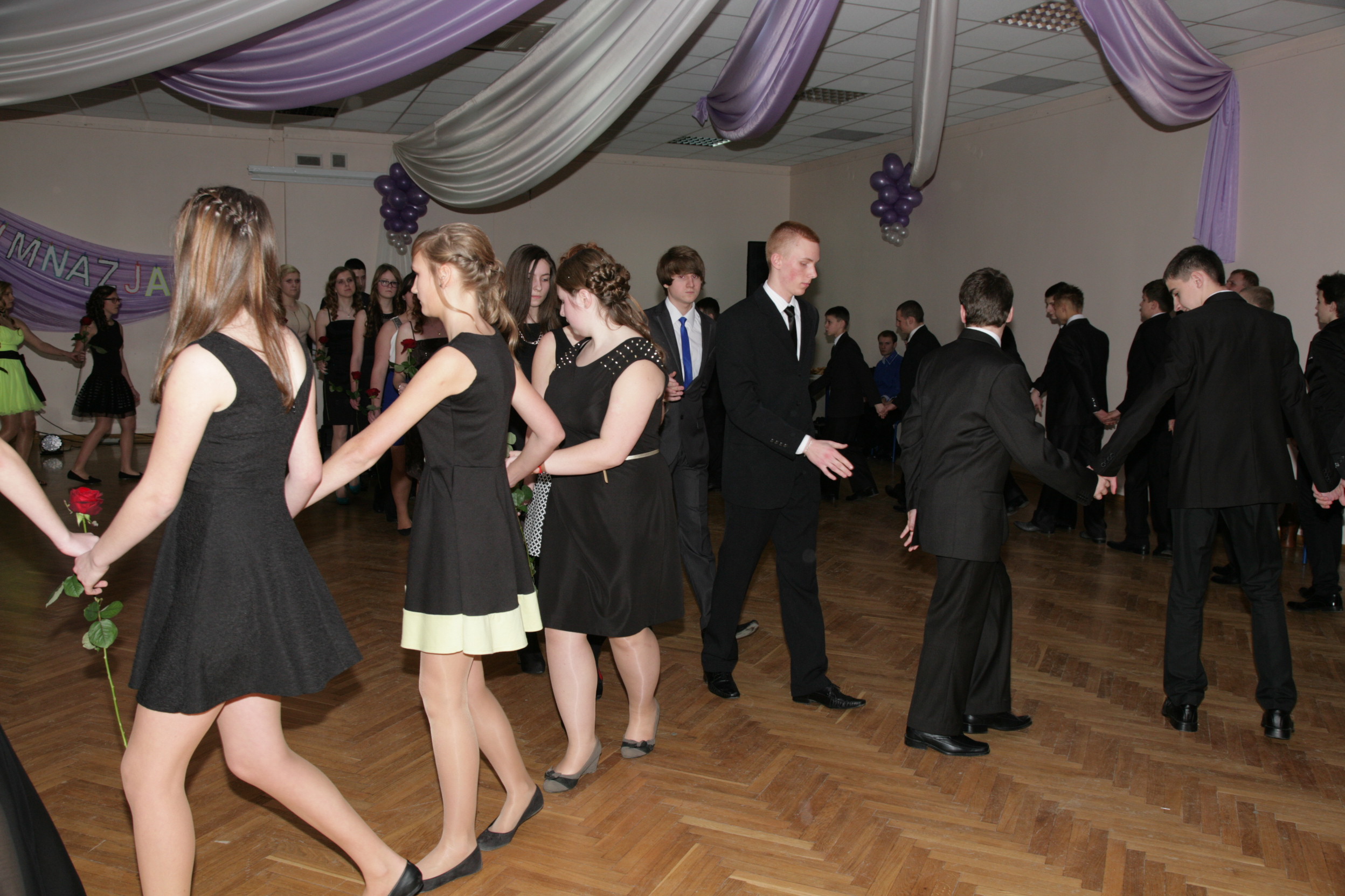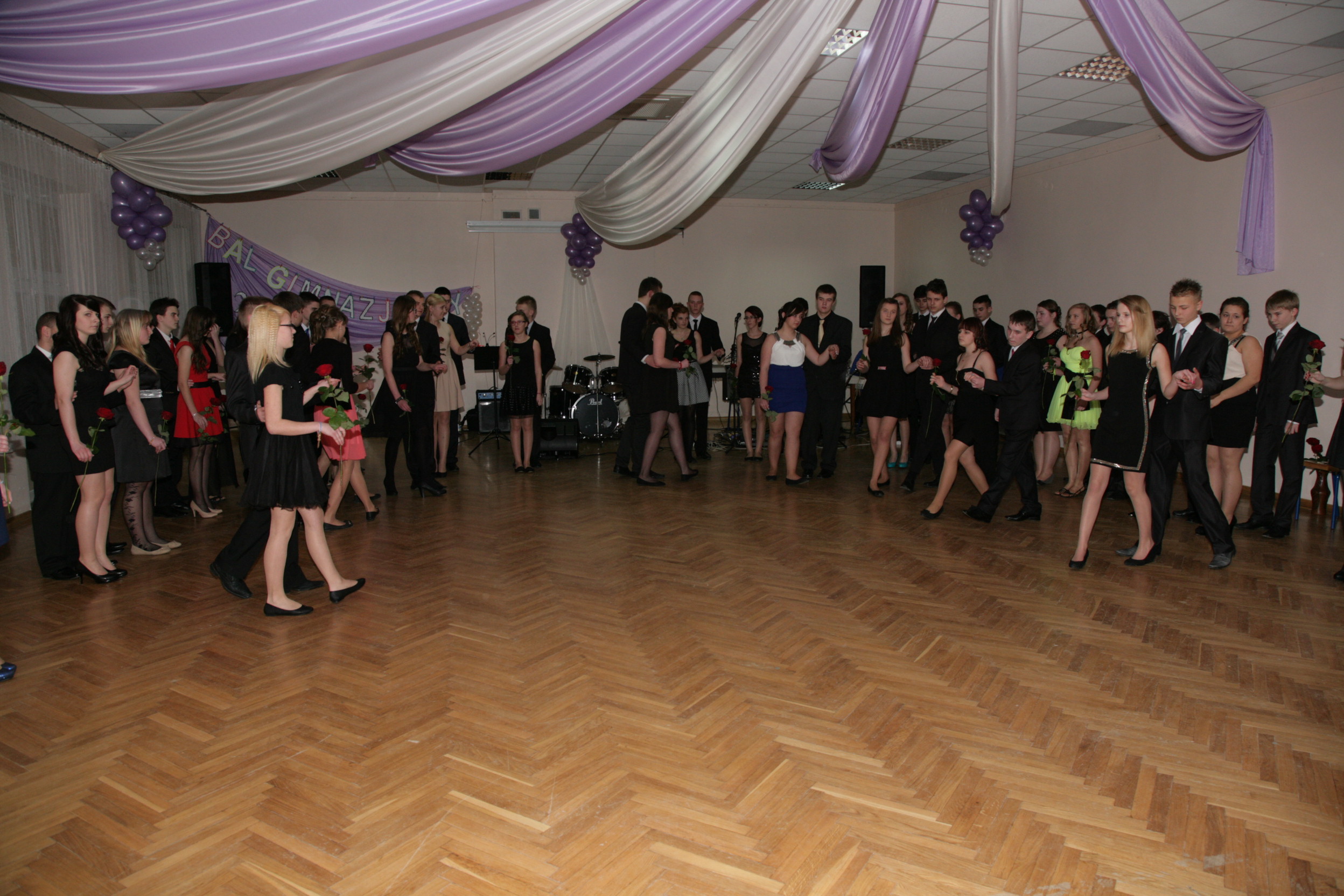 11 stycznia 2014 w naszej szkole odbył się pierwszy bal dla uczniów klas trzecich gimnazjum czyli tzw. „mała studniówka”. Tradycyjnie zabawę rozpoczęliśmy polonezem. Wielotygodniowe ćwiczenia pod okiem Pani Agnieszki Spozowskiej-Kaźmirskiej przyniosły niesamowite efekty. Wprawdzie nasi gimnazjaliści byli trochę stremowani obecnością rodziców, kamer i wzrokiem nauczycieli, ale taniec wykonali perfekcyjnie i z gracją. Tego wieczoru dziewczynki po raz pierwszy włożyły eleganckie sukienki, a chłopcy garnitury, co dodało im trochę powagi i nieco różnili się od tych nastolatków, których widujemy na co dzień w szkole. Dyrekcja, wychowawcy, nauczyciele i rodzice nie kryli wzruszenia. Po części oficjalnej i przemówieniu Pana Dyrektora Mirosława Worobika rozpoczęła się zabawa przy akompaniamencie zespołu muzycznego. Młodzież, nauczyciele i rodzice tańczyli bez wytchnienia do późnych godzin nocnych. Z pewnością ta niesamowita uroczystość długo zostanie w pamięci naszych gimnazjalnych absolwentów.