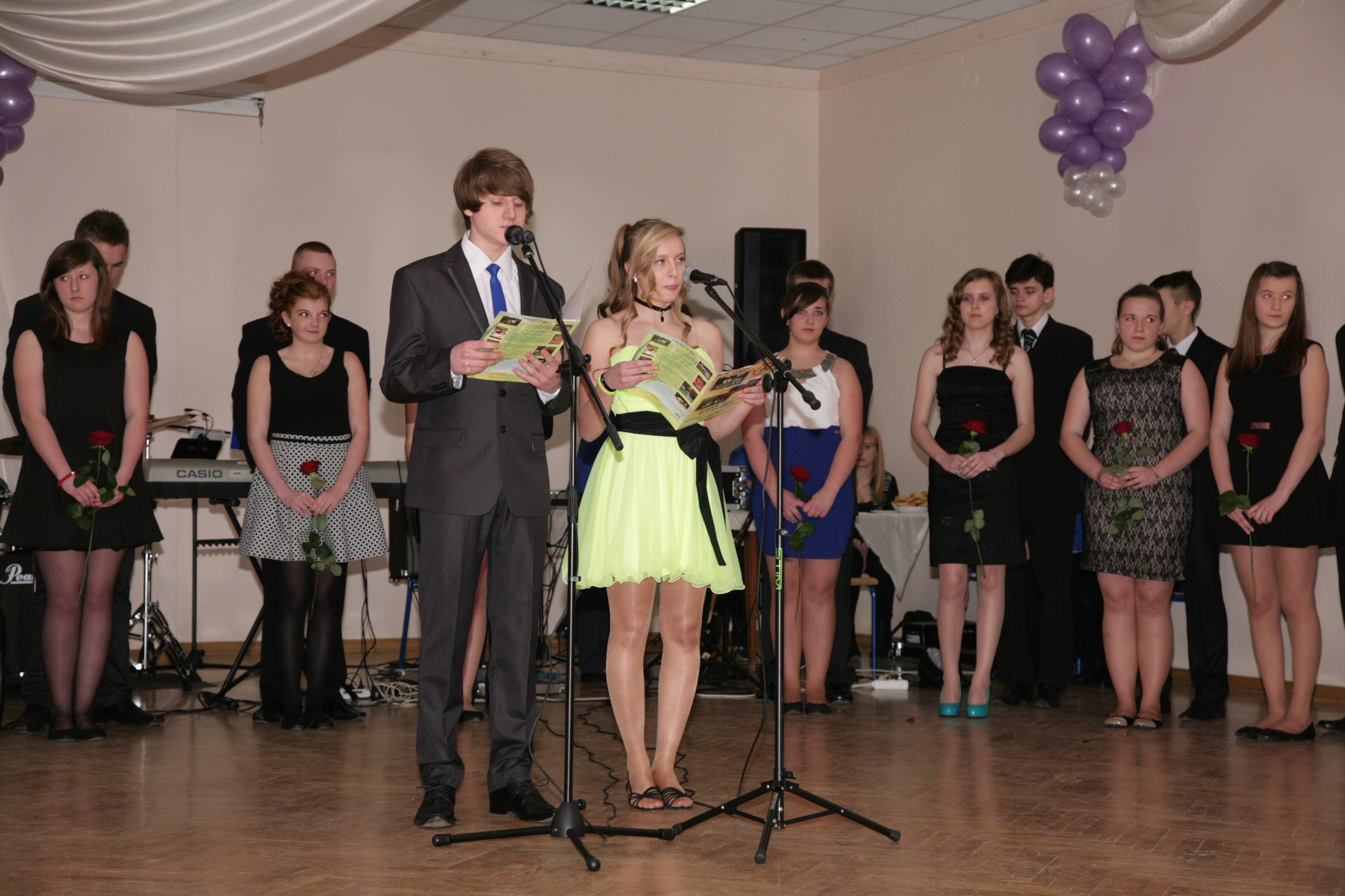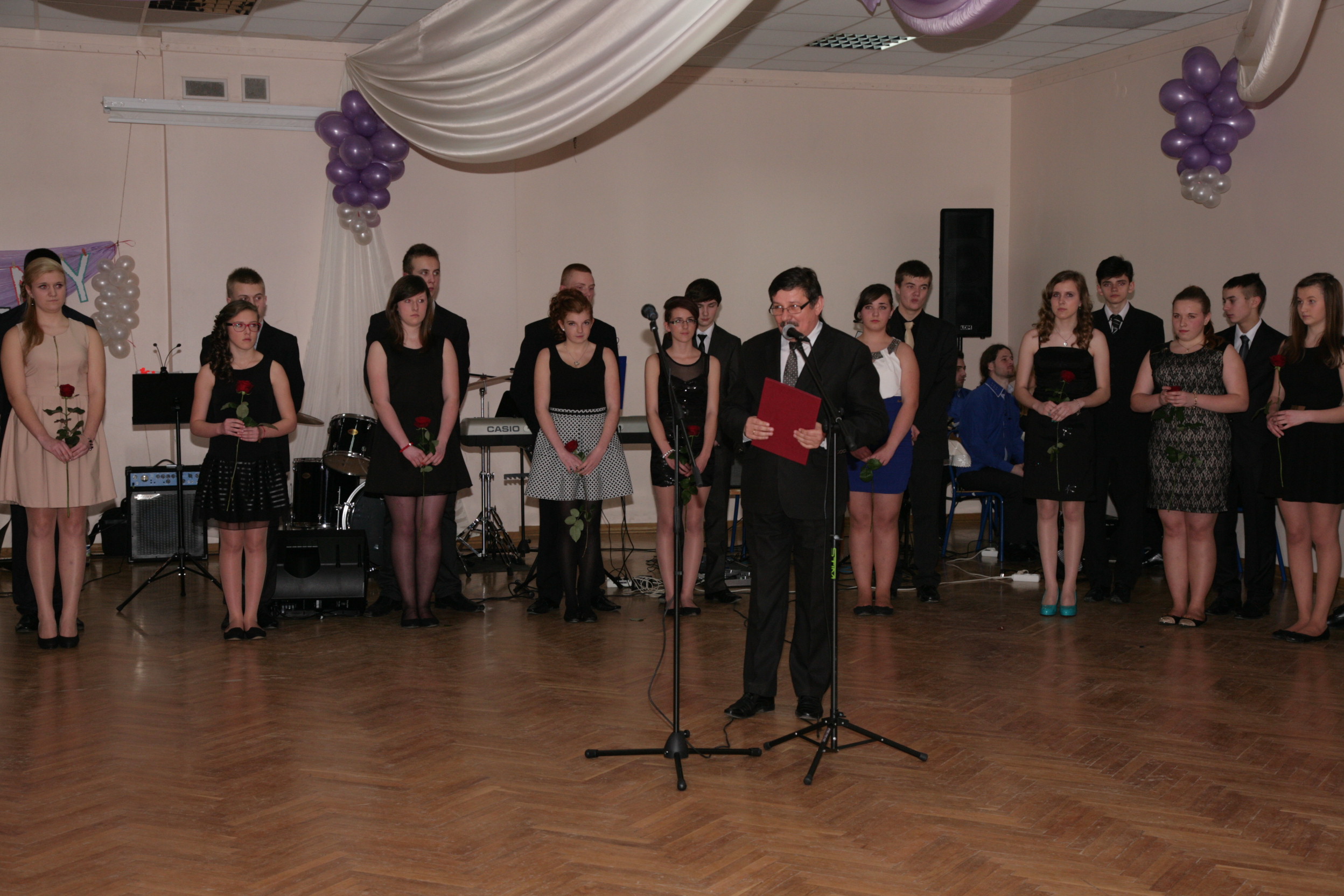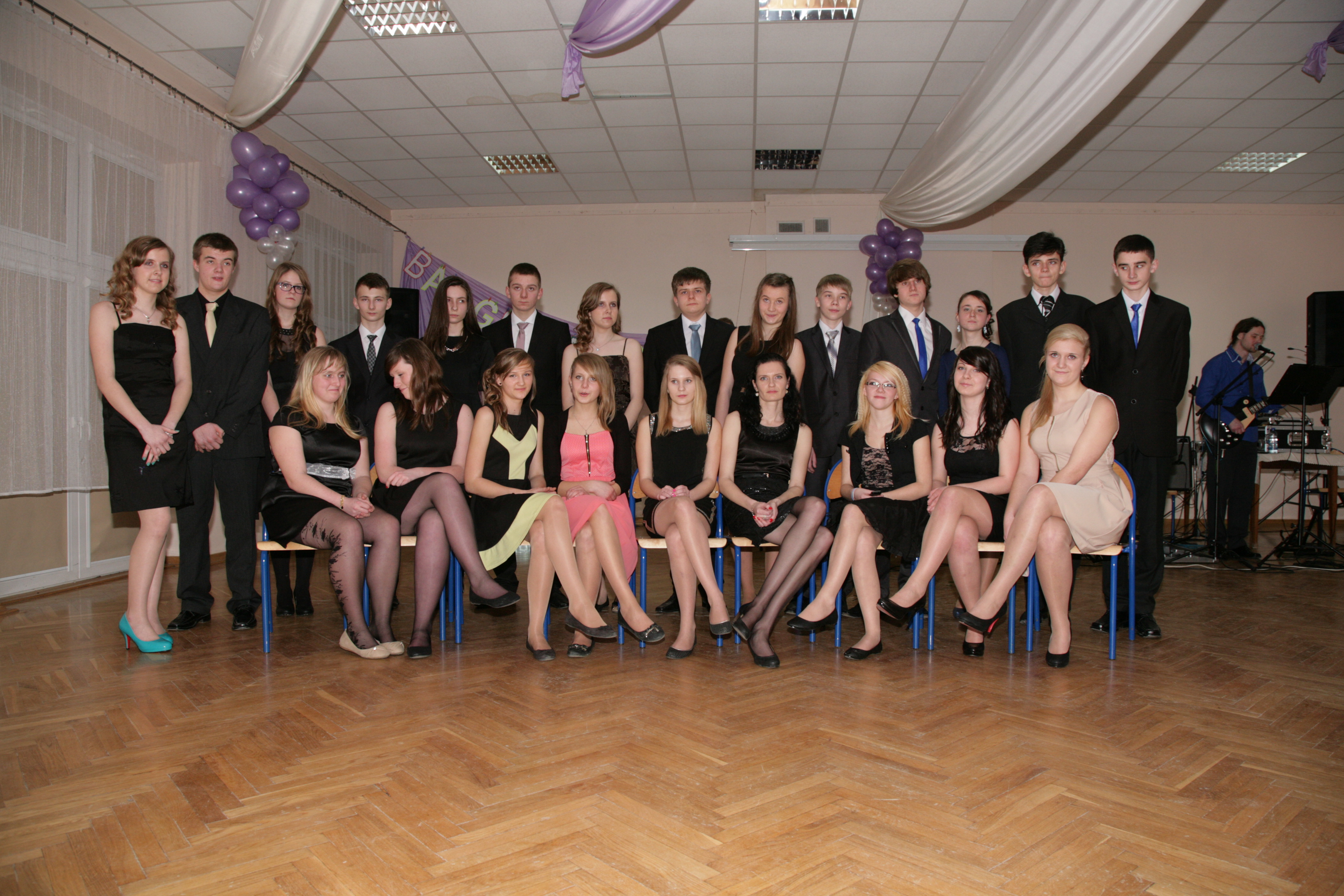 11 stycznia 2014 w naszej szkole odbył się pierwszy bal dla uczniów klas trzecich gimnazjum czyli tzw. „mała studniówka”. Tradycyjnie zabawę rozpoczęliśmy polonezem. Wielotygodniowe ćwiczenia pod okiem Pani Agnieszki Spozowskiej-Kaźmirskiej przyniosły niesamowite efekty. Wprawdzie nasi gimnazjaliści byli trochę stremowani obecnością rodziców, kamer i wzrokiem nauczycieli, ale taniec wykonali perfekcyjnie i z gracją. Tego wieczoru dziewczynki po raz pierwszy włożyły eleganckie sukienki, a chłopcy garnitury, co dodało im trochę powagi i nieco różnili się od tych nastolatków, których widujemy na co dzień w szkole. Dyrekcja, wychowawcy, nauczyciele i rodzice nie kryli wzruszenia. Po części oficjalnej i przemówieniu Pana Dyrektora Mirosława Worobika rozpoczęła się zabawa przy akompaniamencie zespołu muzycznego. Młodzież, nauczyciele i rodzice tańczyli bez wytchnienia do późnych godzin nocnych. Z pewnością ta niesamowita uroczystość długo zostanie w pamięci naszych gimnazjalnych absolwentów.