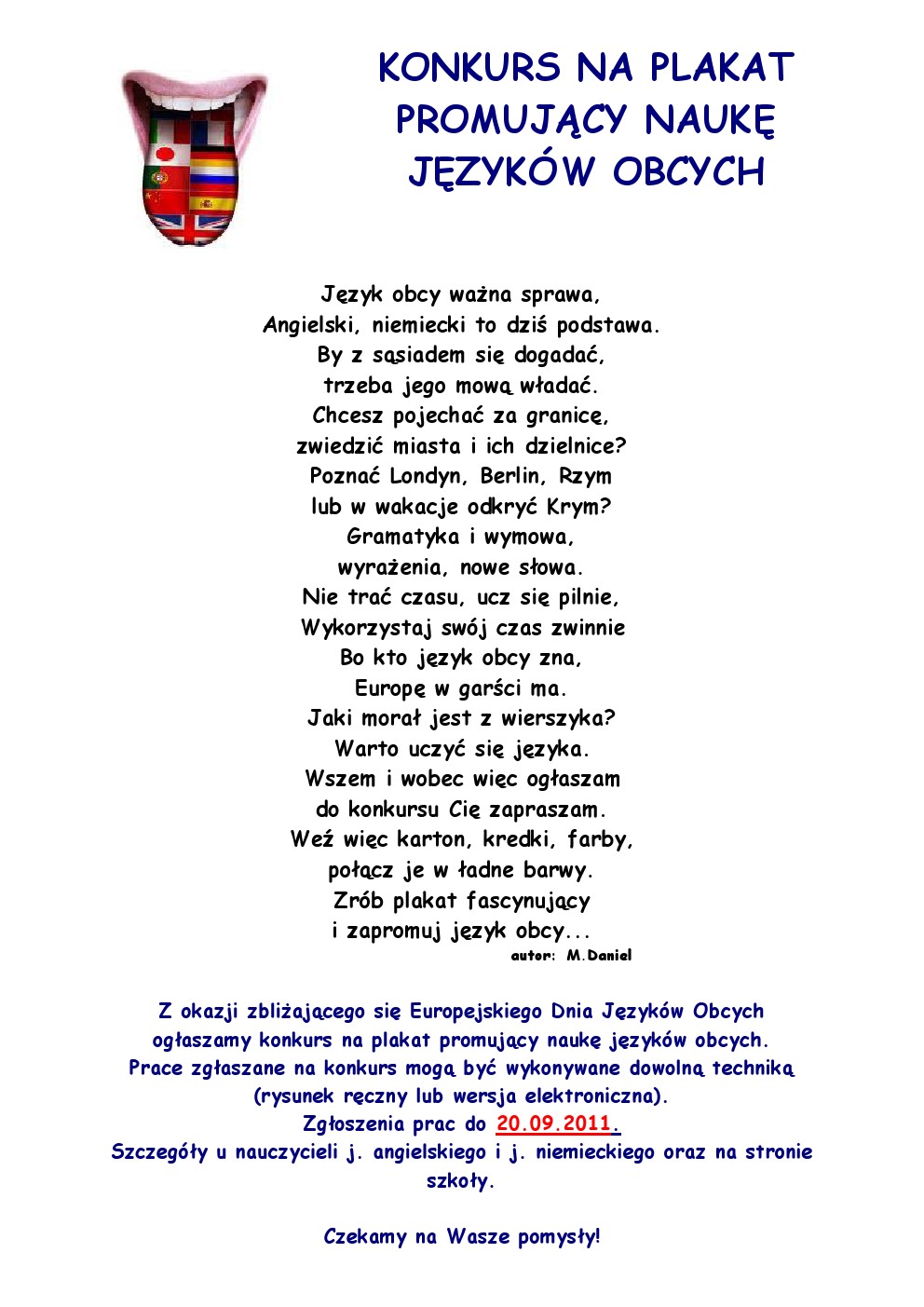 7. Projekty należy złożyć do nauczycieli języków obcych.