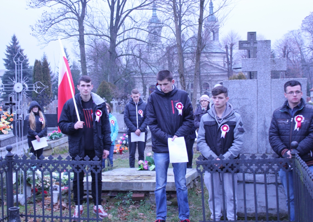 W bieżącym roku przypada 185 rocznica wybuchu Powstania Listopadowego 1830 roku. Wczesnym popołudniem 8 grudnia młodzież z naszej szkoły uczestniczyła w zorganizowanych przy współudziale Samorządu Uczniowskiego rocznicowych uroczystościach. Grupa młodzieży z polskimi flagami i kotylionami w barwach narodowych stawiła się przed mogiłą generała Franciszka Rohlanda na cmentarzu w Bychawce. Po złożeniu wiązanki biało-czerwonych kwiatów i zapaleniu zniczy zebrani wysłuchali wystąpienia Bartosza Kaczmarka, który przybliżył postać bohaterskiego generała. Następnie odśpiewano Hymn oraz Warszawiankę. W chwili ciszy i zadumy wspomniano poległych za Ojczyznę. Jednym z bohaterów wojny Polsko – Rosyjskiej 1830-1831 roku był generał Franciszek Rohland. Karierę wojskową późniejszy generał, rozpoczynał w 1807 roku, w czasach Księstwa Warszawskiego uczestnicząc w walkach z Prusami, wojnie 1809 roku z Austrią i kampanii moskiewskiej 1812 r. Szczególnie wsławił się w 1813 roku długotrwałą obroną Modlina. Służbę wojskową kontynuował po upadku Napoleona w armii Królestwa Polskiego. Szlify generalskie otrzymał po wybuchu Powstania Listopadowego. W walkach z Rosjanami, szczególnie w bitwie pod Olszynką Grochowską i Wawrem, wykazał się męstwem, odwagą i talentami wojskowymi, za co został odznaczony najwyższym polskim odznaczeniem wojskowym Krzyżem Virtuti Militari. Po upadku powstania 1830-31 odmówił służby w armii carskiej, został zesłany w głąb Rosji do Wołogdy. W roku 1833 powrócił do kraju i osiadł początkowo w Lublinie. Później nabył majątek Tuszów. Prowadził rozległe interesy majątkowe. Kilka lat później nabył Żabią Wolę, gdzie w roku 1852 wybudował istniejący do dziś dworek. Funkcjonowała tu świetnie prosperująca stadnina i pasieka. Franciszek Rohland zmarł w Lublinie w 1860 roku i spoczywa w rodzinnym grobowcu na cmentarzu parafialnym w Bychawce. Tuszów i Żabia Wola pozostawały we władaniu rodziny Rohlandów do 1944 roku. Dekretem PKWN odebrano im majątek, a dworek z zabudowaniami gospodarskimi parkiem i 50 ha ziemi przekazano utworzonemu Liceum Pszczelarskiemu. Niedługo potem zmieniono nazwę miejscowości z Żabia Wola na Pszczela Wola. Na zakończenie zebrani przeszli na grób Kajetana Koźmiana wywodzącego się z pobliskich Piotrowic. Wybitnego przedstawiciela klasycyzmu polskiego, poety i pamiętnikarza, senatora i ministra w rządzie Królestwa Polskiego.