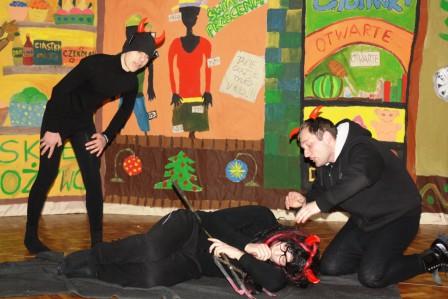 Na tydzień przed świętami mieliśmy okazję obejrzeć współczesną wersję jasełek w wykonaniu naszych uczniów. Główny wątek przedstawienia to satyra na konsumpcyjne podejście do świąt i utratę wartości. Realistyczny i groteskowy spektakl śmieszył i skłaniał do refleksji. Wskazywał także proste sposoby na odnalezienie dobra. Były również kolędy, słuchanie opisu narodzenia Jezusa, życzenia i dzielenie się opłatkiem.