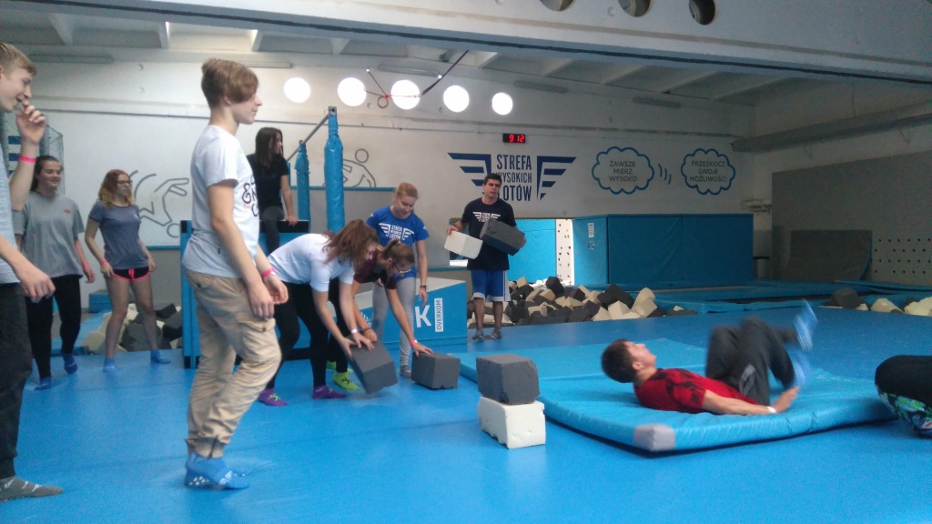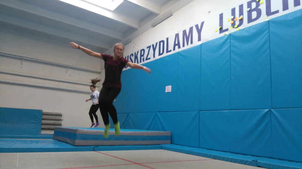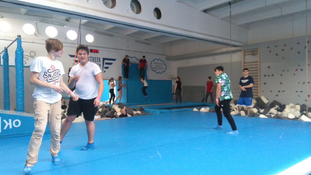 Takiego WF-u jeszcze nie było! To świetna zabawa połączona z dużą dawką sportu: nauka skakania, wykonywania salt i przeskoków, tory przeszkód oraz inne podniebne ewolucje. 17 października klasa IIb gimnazjum - wojskowa aktywnie spędzała czas na wyjazdowej lekcji w-f.