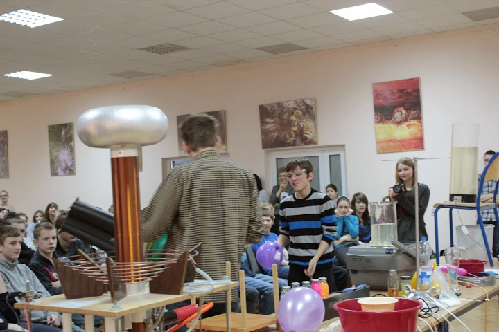 Po pokazach uczniowskich przyszedł czas na profesjonalne pokazy fizyczne, które zaprezentowali nam doktoranci z Instytutu Fizyki UMCS. Było bardzo interesująco i wesoło.