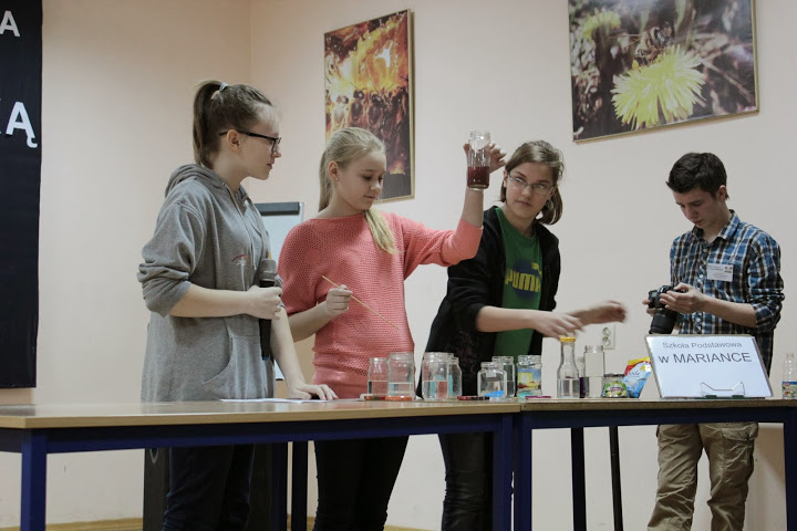 Młodzi naukowcy-eksperymentatorzy spotkali się w naszej szkole, żeby zaprezentować doświadczenia z zakresu przyrody. Reprezentacje szkół przygotowały piękne pokazy doświadczeń uzupełnione komentarzem, który pozwolił widzom zrozumieć dane zjawisko.