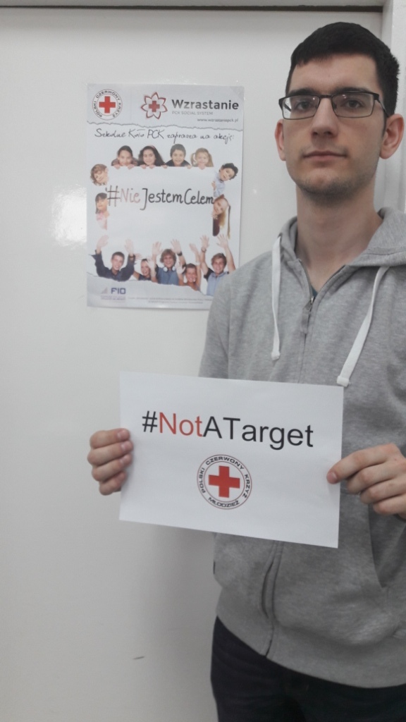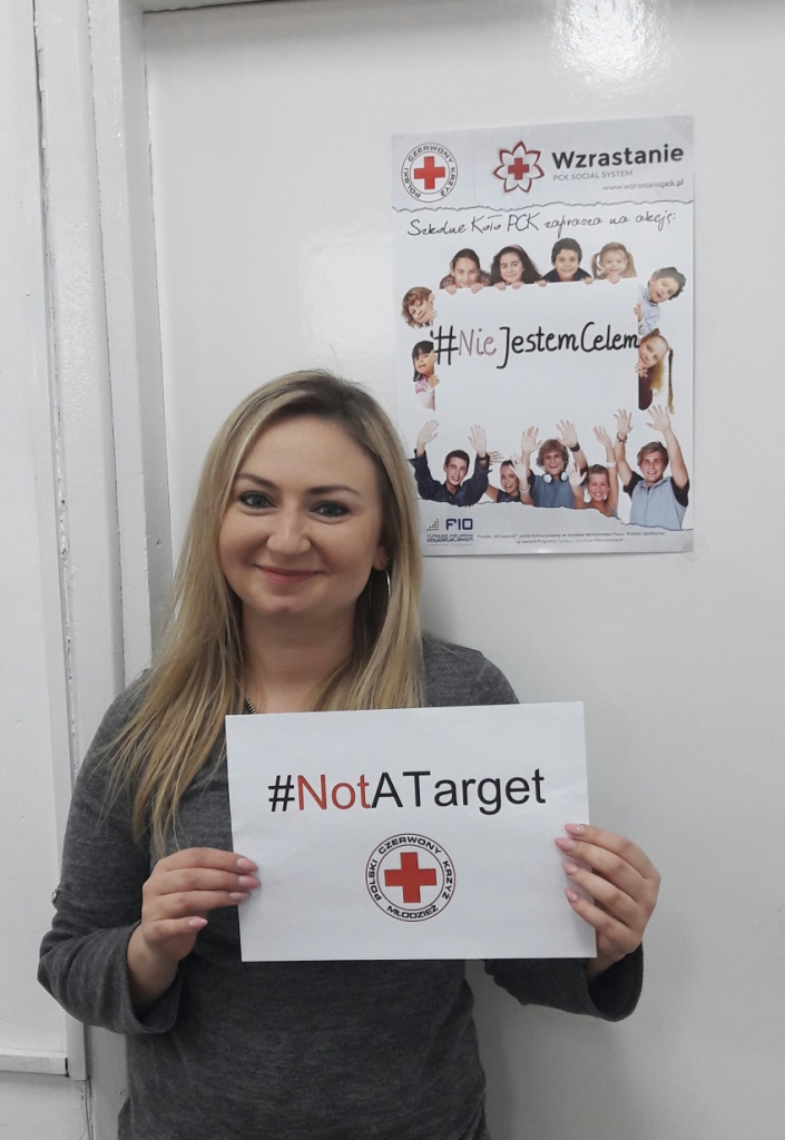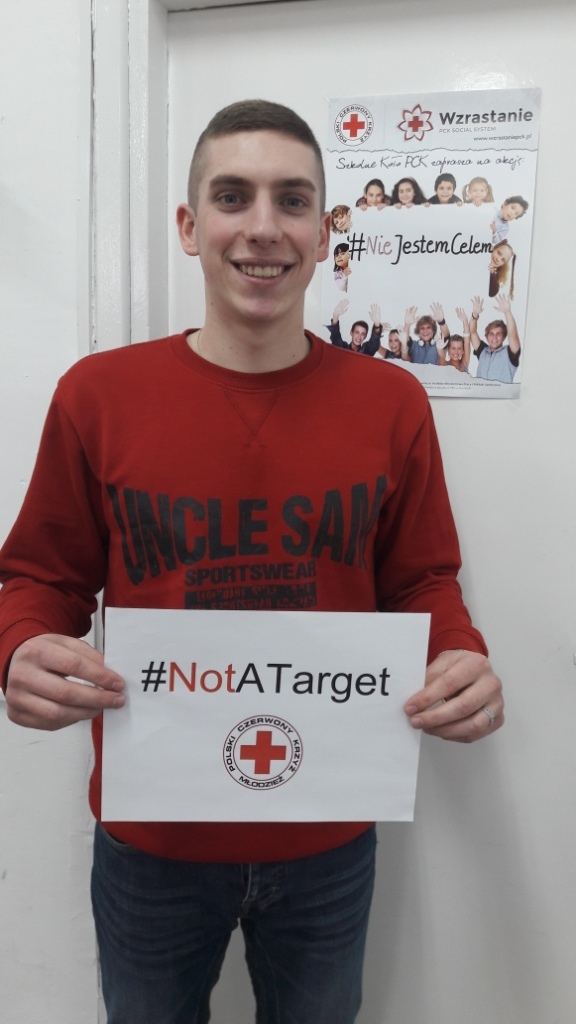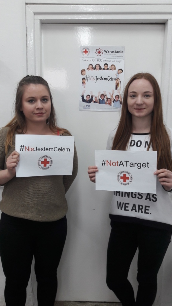 8 lutego 6 członków Czerwonego Krzyża zostało zastrzelonych w Afganistanie podczas swojej pracy. Tego samego dnia dwóch wolontariuszy Czerwonego Krzyża w Syrii zostało zastrzelonych w Aleppo. Od tamtego dnia członkowie/kinie i wolontariusze/ki Czerwonego Krzyża na całym świecie rozpoczęli kampanie pod nazwą #NieJestemCelem, publikując w internecie zdjęcia z kartką z napisem „#NieJestemCelem” / „IamNotATarget”.