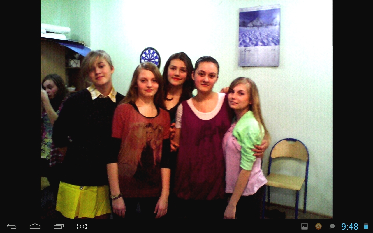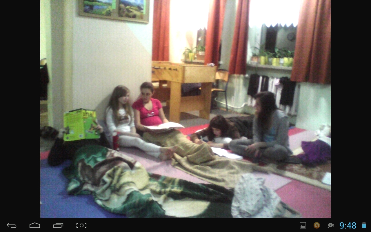Czy chcielibyście spędzić noc w szkole? Taka przygoda była dla dziewcząt z klasy I b gimnazjum wspaniałym sposobem na wspólne spędzenie popołudnia, wieczoru i nocy. Okazało się, że bardzo dobrym miejscem na nocleg jest świetlica szkolna. Po lekcjach wspólnie przygotowałyśmy obiad w pracowni gastronomicznej. Następnie był czas na mały odpoczynek. W tym samym dniu odbyła się również dyskoteka szkolna, do której dziewczęta musiały się odpowiednio przygotować, więc każda z nich przyniosła kosmetyki do makijażu i dziwczyny "zrobiły się na bóstwo". Był czas na zabawę, przyszedł i czas na naukę. Wspólnie uczyłyśmy się słówek na kartkówkę z języka niemieckiego. Jak się okazało, nauka nie poszła na marne, co miało swoje odzwierciedlenie w postaci dobrych ocen na kartkówce następnego dnia. Prosty wniosek z całej imprezy, że można się dobrze bawić i dobrze uczyć.