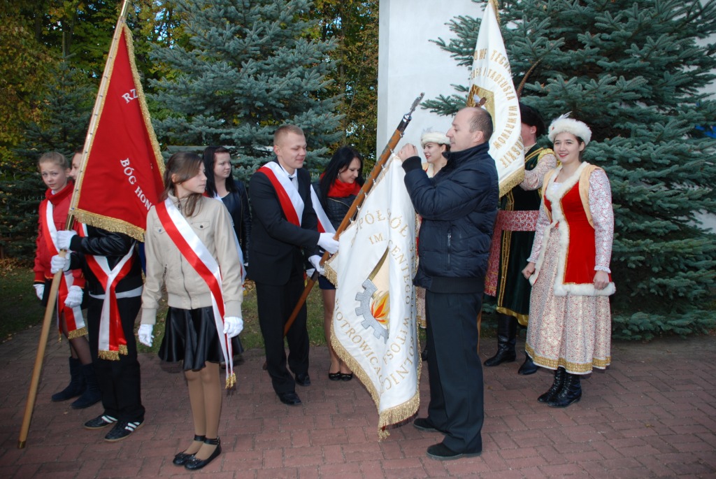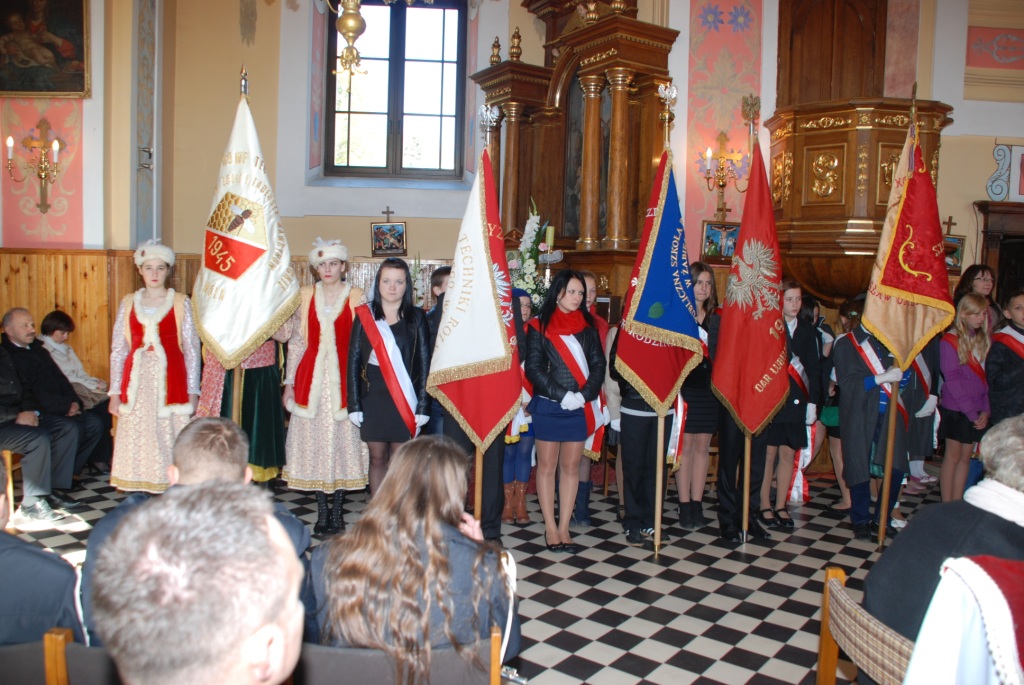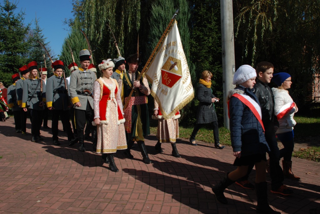 Naszą szkołę reprezentowała Wicedyrektor Zespołu Szkół Rolniczych Centrum Kształcenia Praktycznego w Pszczelej Woli – pani Beata Kowalczyk i poczet sztandarowy w strojach z epoki: Magdalena Osińska, Magdalena Woźniak i Patryk Zając – uczniowie Technikum Pszczelarskiego. Obecne były także delegacje z pocztami sztandarowymi oraz dzieci i młodzież ze wszystkich szkół podstawowych gimnazjalnych i średnich z terenu gminy.