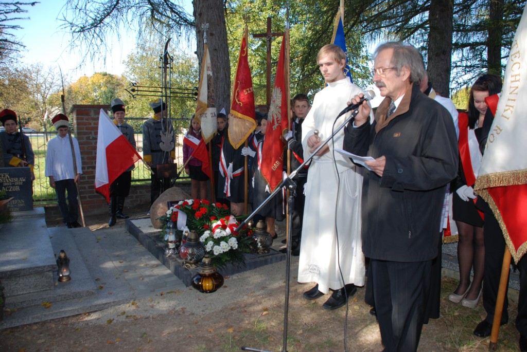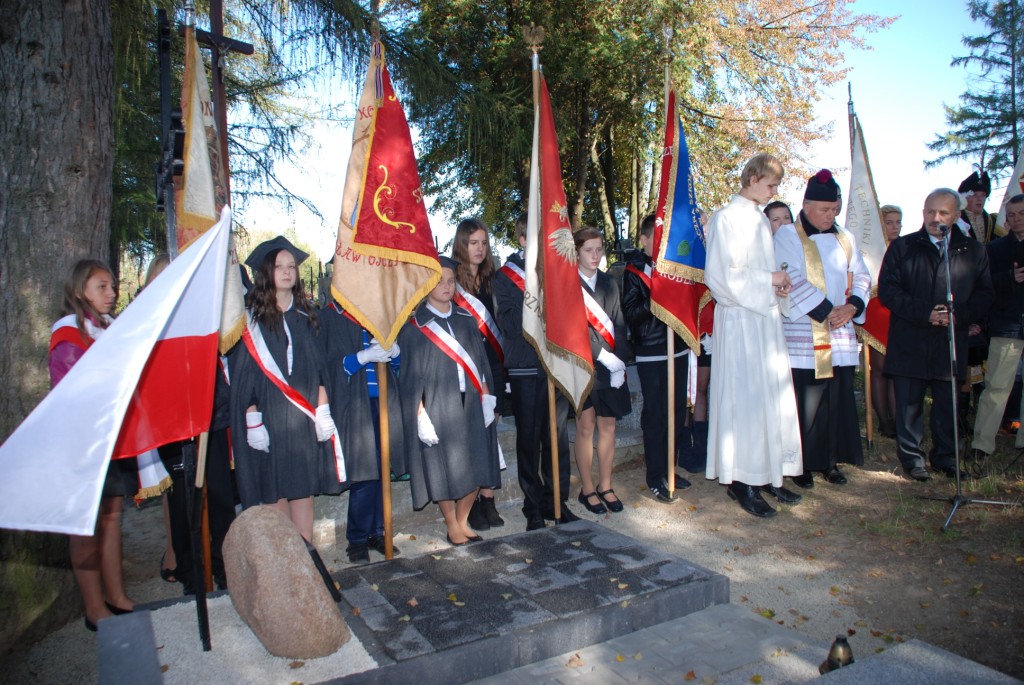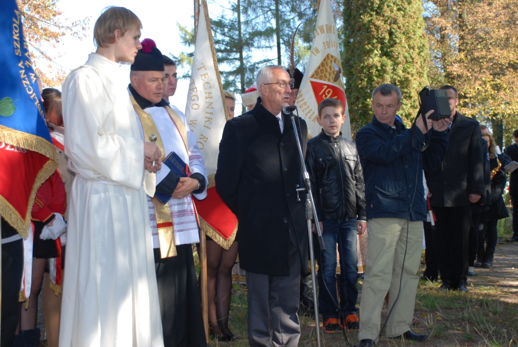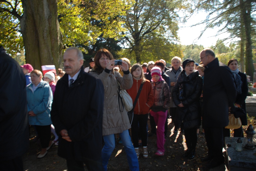 Po Mszy Świętej w intencji poległych, zmarłych i represjonowanych powstańców 1863 roku, nastąpił przemarsz pocztów sztandarowych i wszystkich zgromadzonych przy dźwiękach orkiestry na pobliski cmentarz. Tu po wysłuchaniu Hymnu Państwowego w wykonaniu orkiestry dętej z Liceum Ogólnokształcącego w Bychawie, odbyło się poświęcenie krzyża na mogile nieznanego żołnierza - powstańca.