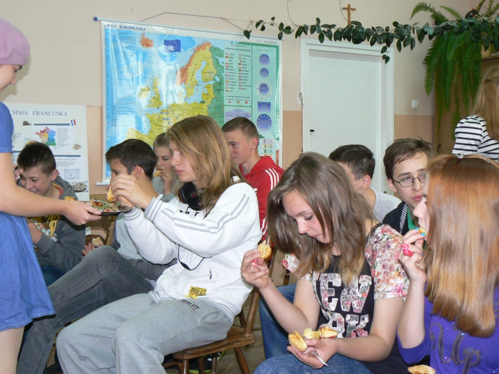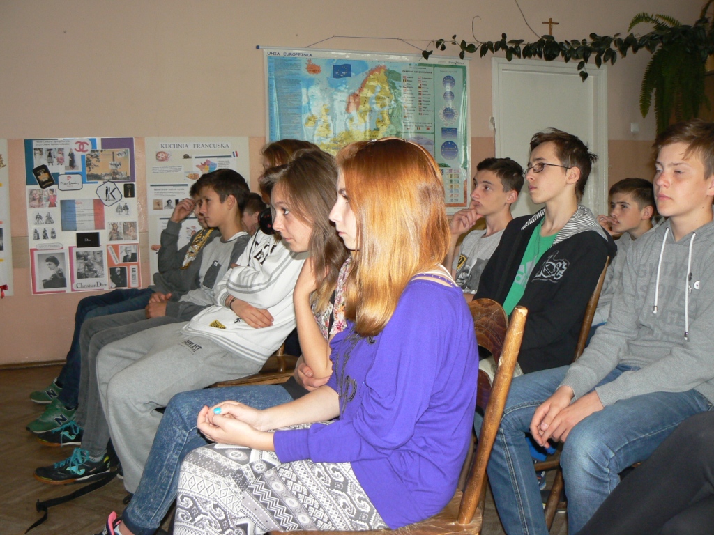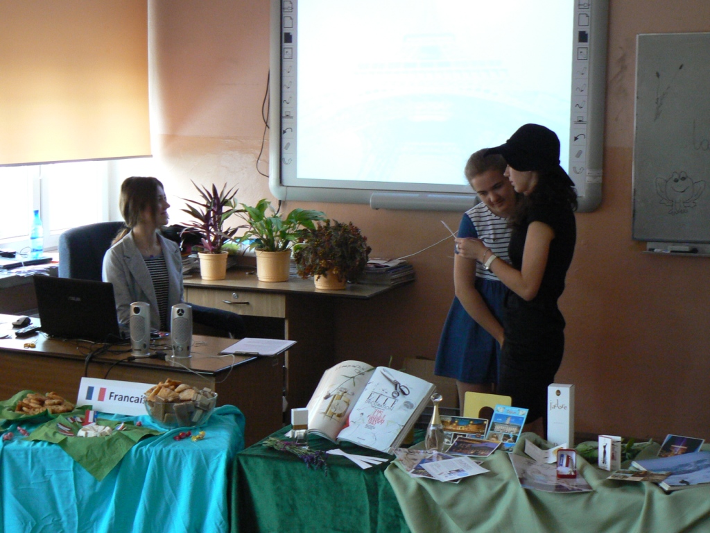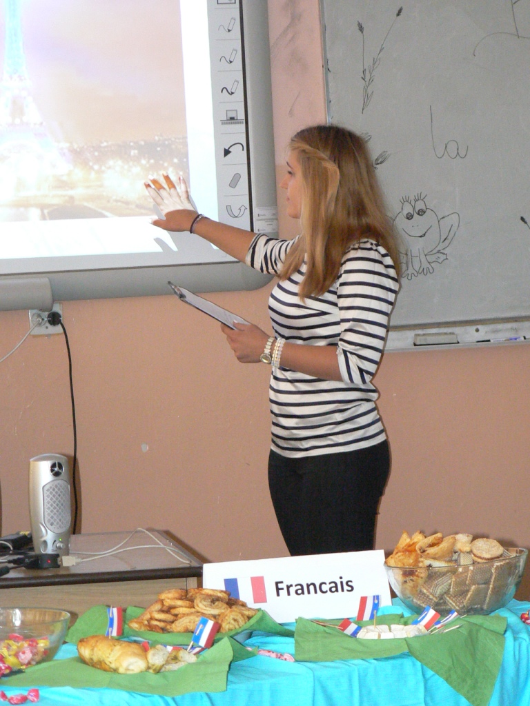 Dziewczęta przygotowały prezentacje multimedialne oraz tablice informacyjne. Zabrały zgromadzonych w niezapomnianą podróż. Podczas pokazu uczniowie klas II a i II b mieli okazję zapoznać się z kulturą, geografią, modą, muzyką, kuchnią francuską jak również poznać interesujące ciekawostki. Uczestnicy mogli skosztować specjałów przygotowanych przez zespół projektowy. Spotkaniu towarzyszyła wystawa eksponująca atrybuty kojarzące się z Francją. Nie zabrakło oczywiście ziół, serów, bagietek, zdjęć, albumów tematycznych, magazynów i perfum. Quizy przygotowane przez uczennice jak również charakterystyczne utwory i melodie wpłynęły na aktywny udział uczniów, pozytywną atmosferę i niezapomniane wrażenia.