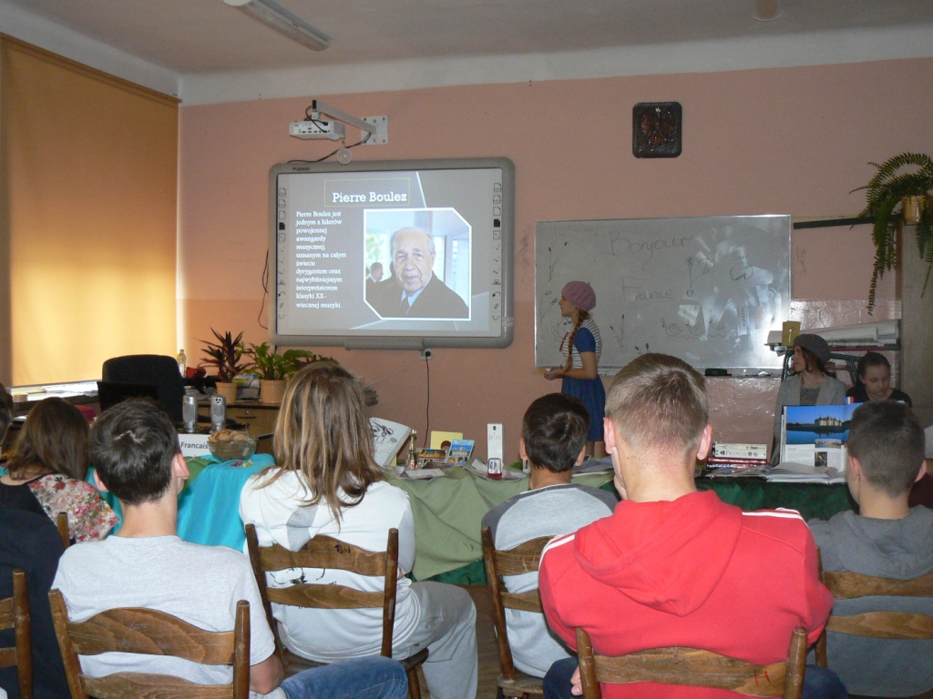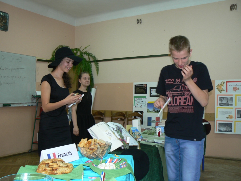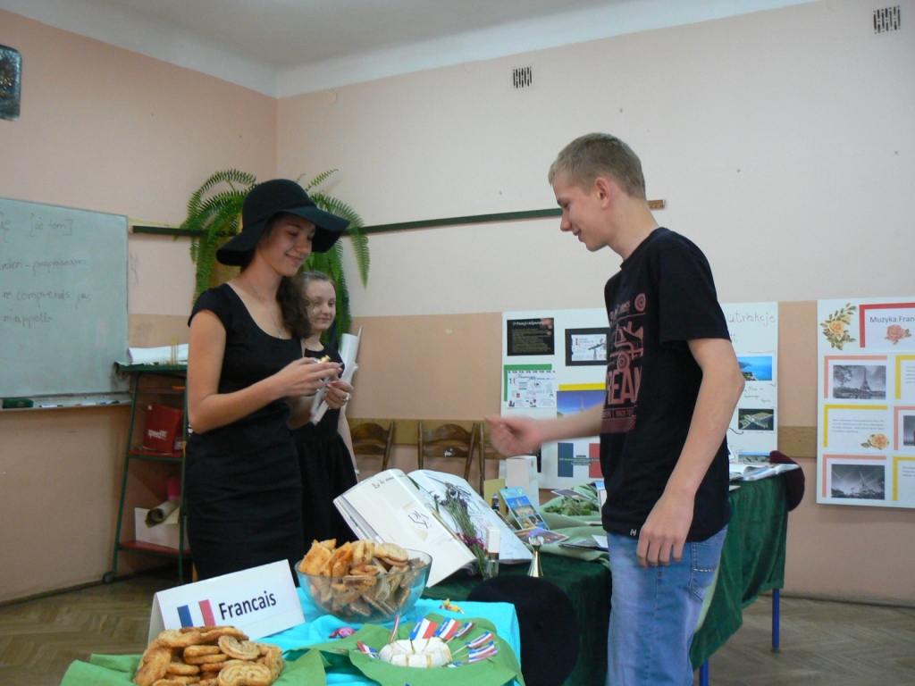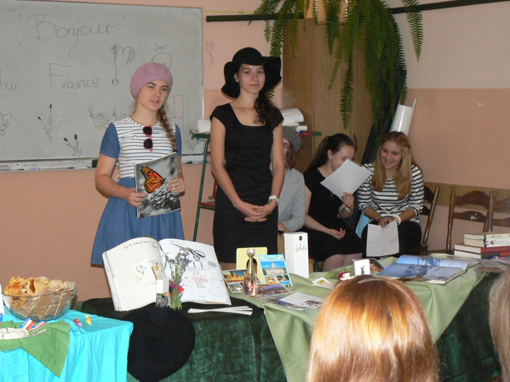 Dnia 23 czerwca 2015 r. odbyła się prezentacja projektu pt. „O Francji, Francuzach i języku francuskim’’. Brały w niej udział: Angelika Rozwód, Wiktoria Sieracka, Katarzyna Mazur, Katarzyna Wójcik i Marta Wachowska, uczestniczki zajęć pozalekcyjnych z języka francuskiego. Opiekunem przedsięwzięcia była p. Izabela Kępa. Celem projektu było: pogłębienie i prezentacja wiedzy o Francji oraz popularyzacja języka francuskiego.