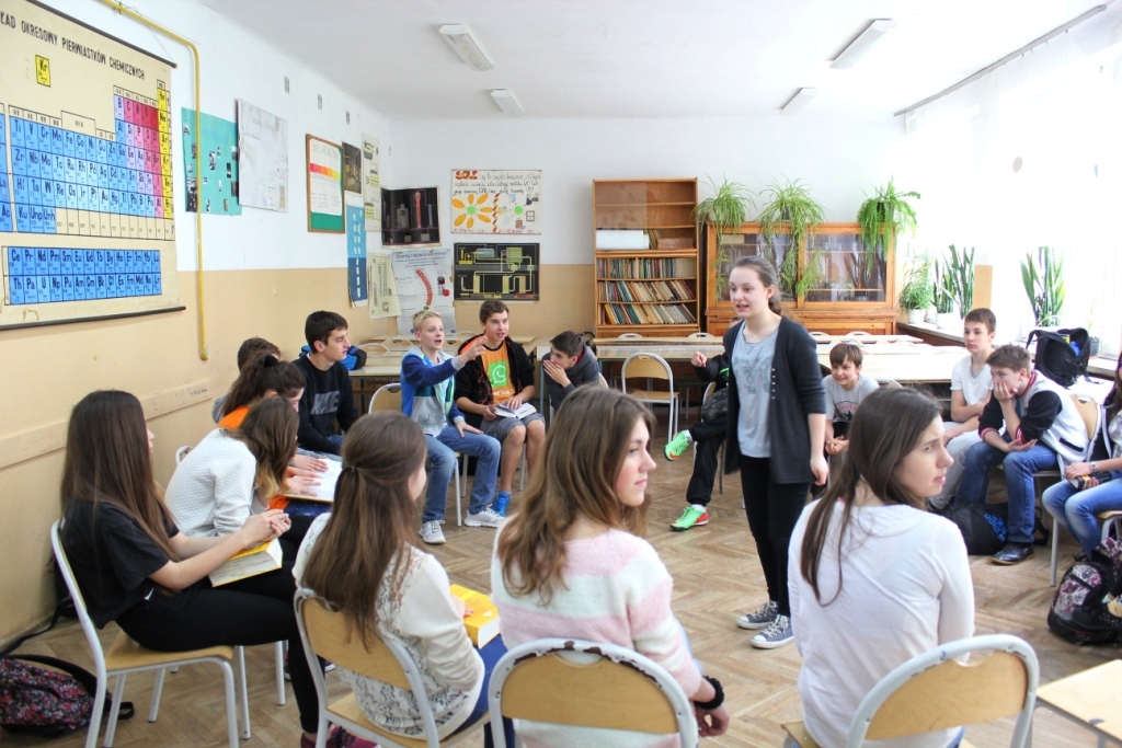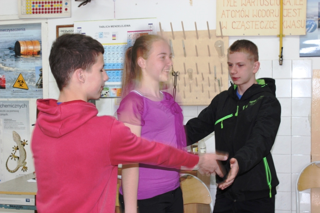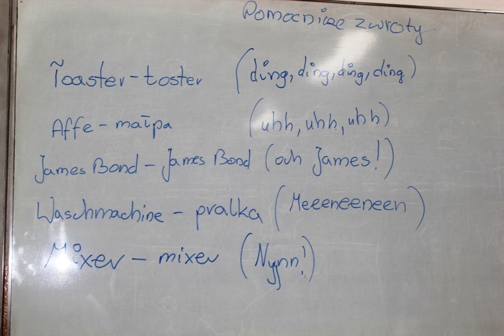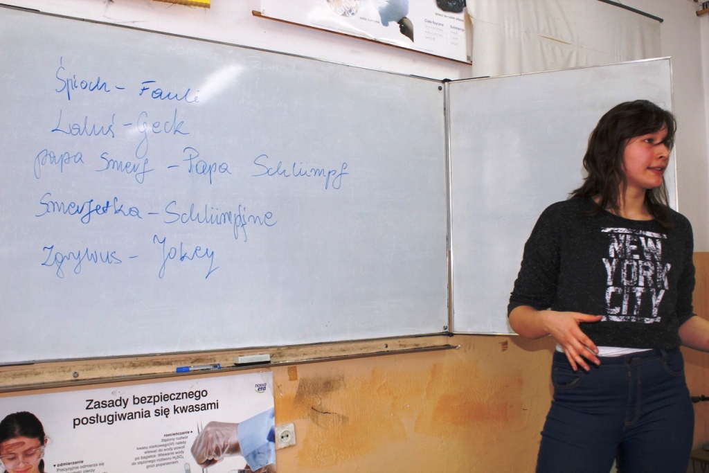 Uczennice przygotowały, dla swoich kolegów z klasy, wyjątkową lekcję niemieckiego w formie gier i zabaw językowych, mającą na celu poznanie i utrwalenie słownictwa z zakresu zwierząt, owadów, części ciała, rzeczy codziennego użytku.