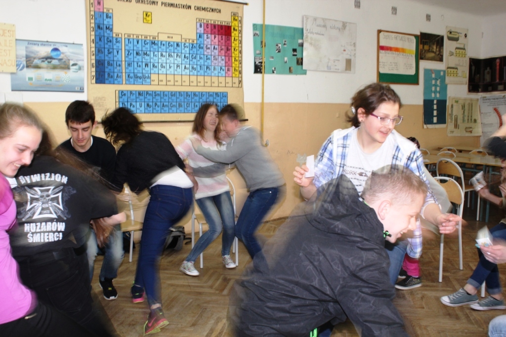 Czy język niemiecki może być przyjemny? Czy można uczyć się bawiąc? Na to pytanie, pod okiem nauczycielki j. niemieckiego p. Mileny Daniel, odpowiedzi poszukiwały uczennice klasy II a i b gimnazjum – Dominika Brygoła, Marta Wachowska, Katarzyna Wójcik, Aleksandra Chwała.