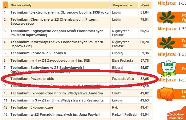 Ranking Techników 2011 - woj. lubelskie: