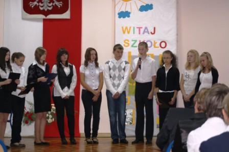 Pierwszy dzwonek w roku szkolnym 2010/2011 poprzedziła w naszej szkole uroczysta akademia, na którą przybyli uczniowie, nauczyciele, rodzice oraz szacowni goście. Akademię, podczas której wspominaliśmy mione wakacje, dzieliliśmy się nadziejami na rozpoczynający się rok intensywnej pracy, a także oddaliśmy hołd ofiarom II wojny światowej, przygotowała klasa II gimnazjum wraz z wychowawcą. Wysłuchaliśmy także piosenek w wykonaniu Sary oraz naszej drużyny harcerskiej, a także obejrzeliśmy krótki koncert niezawodnego Apisu.