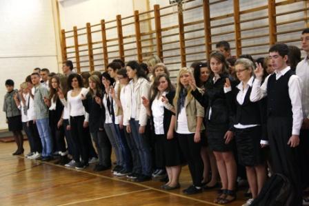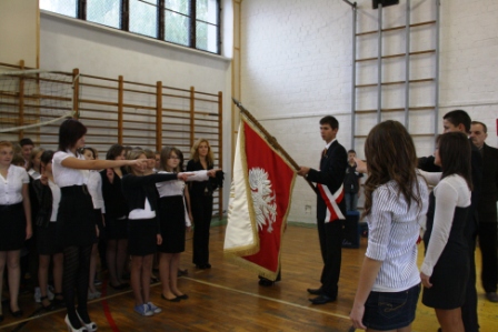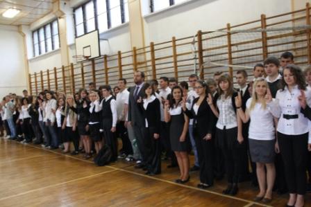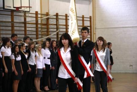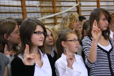 W poniedziałek 10 października 2011 uczniowie wszystkich pierwszych klas naszej szkoły złożyli uroczyste ślubowanie, w którym zobowiązali się do wzajemnej życzliwości, sumiennego wykonywania obowiązków oraz dbania o dobre imię szkoły. Podczas uroczystości Pan Dyrektor przypomniał o bogatej tradycji naszej szkoły i dodał, że jej historię współtworzą wszyscy uczniowie. W imieniu Samorządu Uczniowskiego pierwszaków przywitał jego przewodniczący Łukasz.
