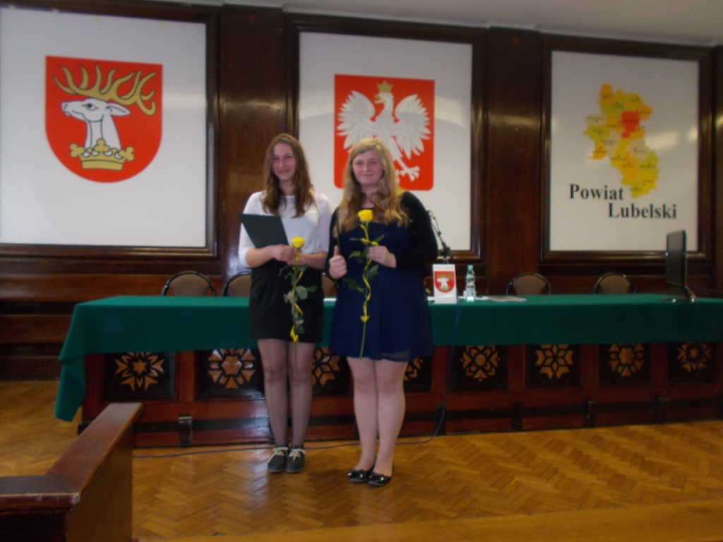 Warto się uczyć, mieć wysoką średnią, tak jak dwie uczennice naszej szkoły Dominika Brygoła z klasy III A gimnazjum i oraz Agnieszka Kowalczyk uczennica klasy III B TŻ i UG, które otrzymały stypendium naukowe za II semestr roku szkolnego 2015/16 uroczyście wręczone przez Starostę Lubelskiego pana Pawła Pikulę na spotkaniu które odbyło się w dniu 21.04. 2016 r. w Starostwie Powiatowym w Lublinie. Nagrodą była również wycieczka z przewodnikiem po Zamku Lubelskim jako bardzo ciekawa lekcja historii. Dziewczętom gratulujemy i życzymy dalszych sukcesów w nauce.