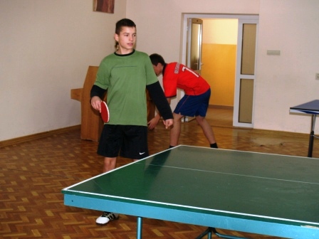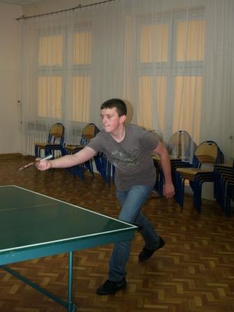 W piątek 10 października 2011r. roku w sali audiowizualnej internatu spotkali się pasjonaci tenisa stołowego naszej szkoły. Turniej był zorganizowany przez świetlicę szkolną dla uczniów gimnazjum. Wzięli w nim udział uczniowie klas I, II i III gimnazjum. Zawody odbywały się systemem ,,każdy z każdym”. Uczestnicy grali do dwóch wygranych setów, z czego każdy set grano do 11 punktów.