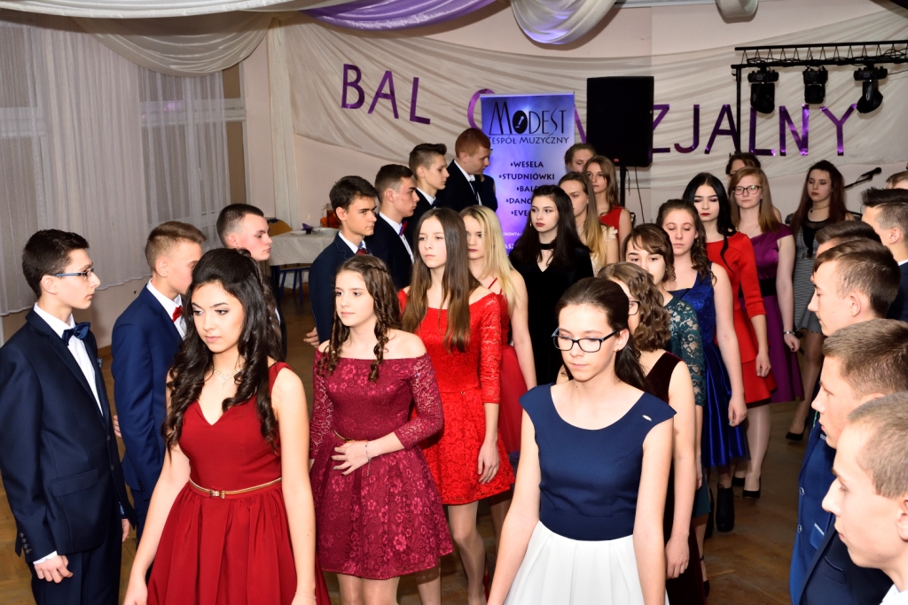 W sobotni wieczór, 13 stycznia 2018 roku w Publicznym Gimnazjum w Pszczelej Woli miało miejsce niecodzienne wydarzenie – uczniowie klas III przeżyli swój pierwszy bal. Odświętnie ubrani trzecioklasiści z uśmiechem na twarzach zgromadzili się w sali audiowizualnej, aby tradycyjnym polonezem rozpocząć uroczysty bal, co nie było łatwe przed licznie zebraną publicznością. Piękne życzenia i podziękowania były już tylko dopełnieniem całości. Młodzież podziękowała Dyrekcji, Gronu Pedagogicznemu, wychowawcom za trud włożony w ich kształcenie i wychowanie. Nie zabrakło też słów podziękowań dla rodziców, dzięki którym ten wieczór okazał się wyjątkowy. Serdecznie ciepło młodzież przywitała dyrektorów i wychowawców szkół podstawowych. A potem… Potem już tylko zabawa w dyskotekowych rytmach przy obficie zastawionych stołach do samej północy. Rodzice i wychowawcy zadbali o to, aby podczas tego wspaniałego wieczoru niczego nie zabrakło ich pociechom, a goście mogli się poczuć naprawdę wyjątkowo. Ten wieczór, miło i wesoło spędzony na długo pozostanie w pamięci, bo przecież „Wszystko ma swój czas , I każde dzieło ma swój czas pod niebem. Jest czas śmiechu (...) i czas tańca...".