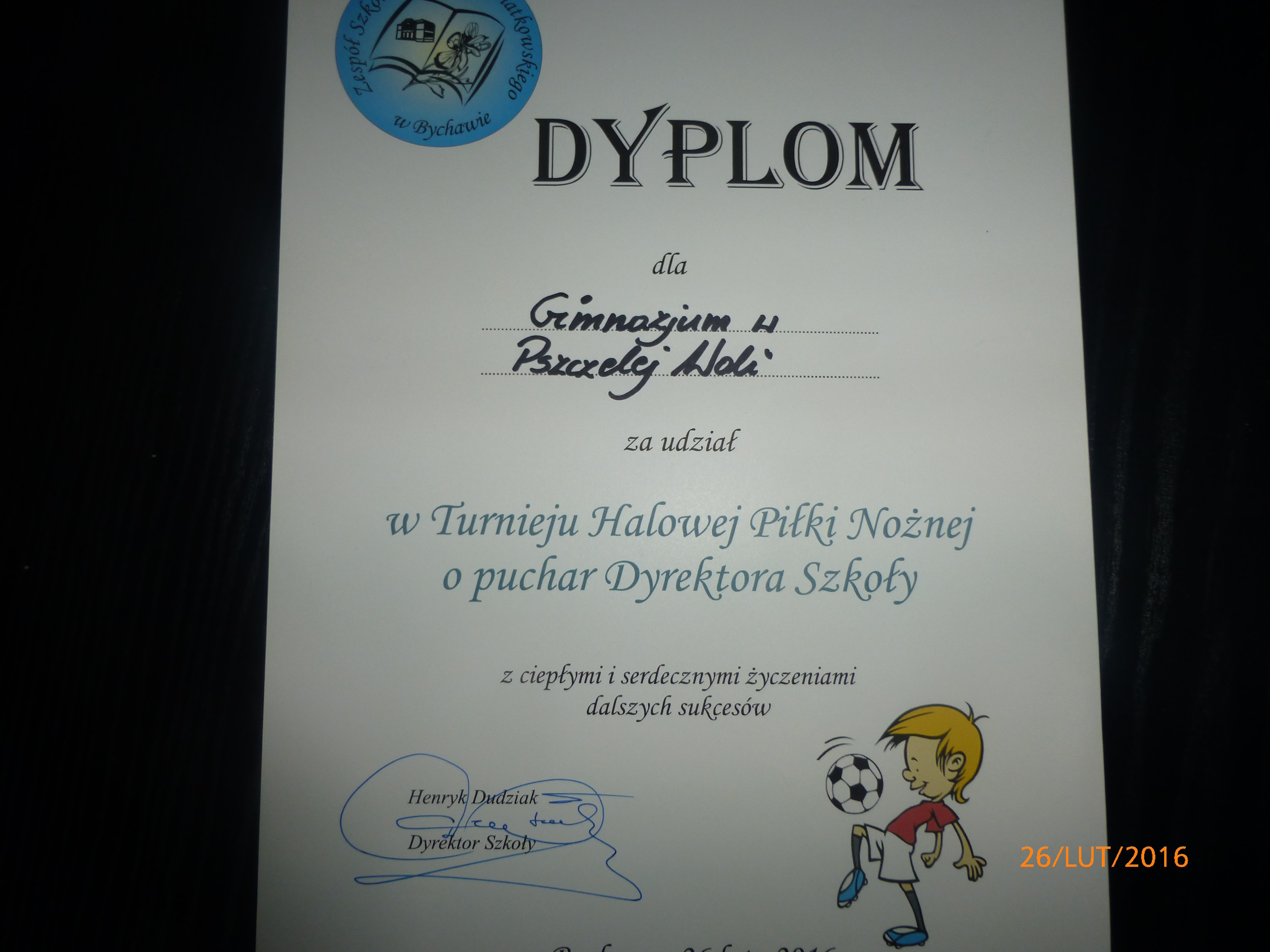 26.02.2016 w Bychawie odbył się Halowy Turniej Piłki Nożnej o Puchar Dyrektora Zespołu Szkół im. Ks. A Kwiatkowskiego. Jak co roku Nasze Gimnazjum w Pszczelej Woli otrzymało zaproszenie do udziału w tych rozgrywkach.
