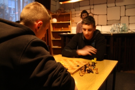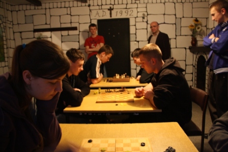 W zmaganiach o tytuł „ Warcabowego mistrza” stanęło 7 uczestników: 6 chłopców i 1 przedstawicielka broniąca honoru płci pięknej. Liderem pierwszego etapu został Andrzej Maksimek I TP, za nim z minimalną stratą pół punktu plasuje się Iwan Liplianin II TP, trzecie i zarazem równoległe miejsce zajmują Maciej Firlej z II LO oraz Karol Świś z I TP.