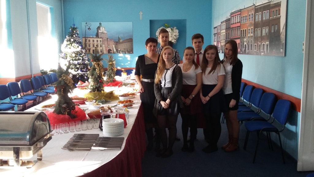 W dniu 11grudnia uczniowie Technikum Żywienia i Usług Gastronomicznych przygotowali i obsługiwali bankiet w stylu angielskim o charakterze wigilijnym pod kierunkiem pani Teresy Chwały.