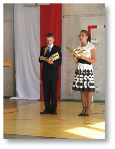 Wszystkich nauczycieli, uczniów i rodziców na uroczystym rozpoczęciu roku szkolnego przywitał Dyrektor Szkoły Pan Mirosław Worobik. W swoim przemówieniu podkreślił, że po dwumiesięcznym odpoczynku czeka nas okres wytężonej pracy. Dla wielu uczniów ten dzień jest wyjątkowy. Dla pierwszoklasistów przekroczenie progu szkoły, to otwarcie nowego etapu w życiu. Maturzystom i gimnazjalistom przystępującym w tym roku do egzaminu pan dyrektor życzył wytrwałości w zdobywaniu wiedzy i wielu sukcesów. Młodzież klas gimnazjum pod kierunkiem nauczycieli przygotowała montaż słowno- muzyczny.