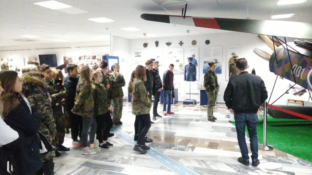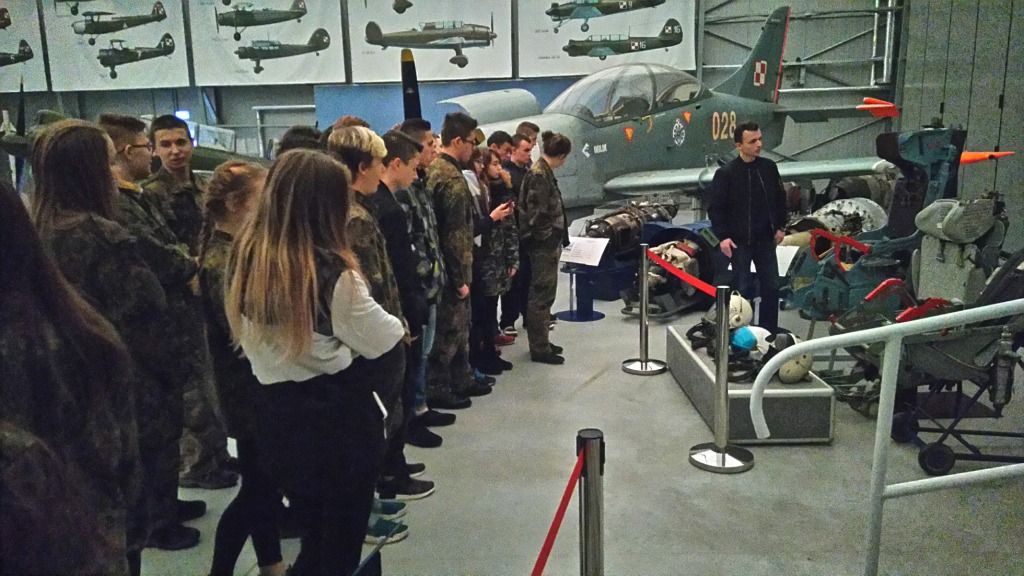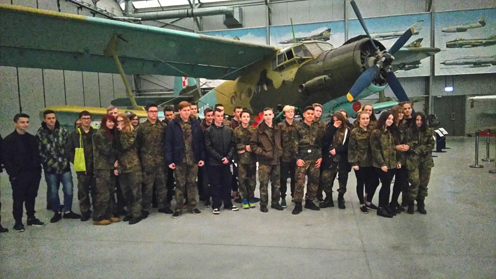 24.10.2017 uczniowie klasy wojskowej (ze wsparciem uczniów z klas trzecich gimnazjum) odwiedzili 41. Bazę Lotnictwa Szkolnego w Dęblinie. Wyjazd był efektem nawiązanej niedawno współpracy naszej placówki z Jednostką Wojsk Lotniczych. Przy okazji zwiedzono Muzeum Sił Powietrznych, którego najważniejszą misją jest upowszechnianie wartości historycznych związanych z dziejami oręża polskiego, w szczególności z historią i tradycją sił powietrznych, broni przeciwlotniczej, popularyzacja wiedzy o polskiej historii wojskowości oraz promowanie Sił Zbrojnych Rzeczypospolitej Polskiej.