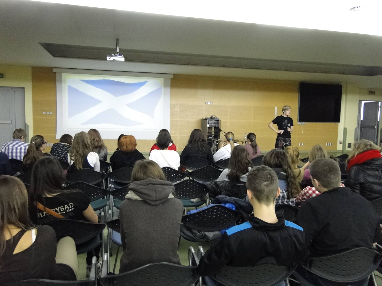 29 listopada 2012 klasa IIa gimnazjum brała udział w warsztatach w języku angielskim z rodowitym Szkotem w Warszawie w ramach europejskiego programu edukacyjnego Learning Without Borders (Nauka bez granic). Warsztaty prowadził Neal Stewart, który urodził się w Glasgow i od kilku lat uczy języka angielskiego. Podczas zajęć opowiedział uczniom wiele ciekawych faktów o Szkocji, jej tradycjach, historii, sławnych ludziach oraz tzw. "ciekawostek z życia wziętych". Wszystko to oczywiście w języku angielskim, co dało uczniom możliwość kontaktu z "żywym językiem".Ponadto uczniowie mięli też okazję poznać kilka słów w języku szkockim. Po warsztatach wybrane uczennice, biorące udział w projekcie edukacyjnym "Z językiem angielskim przez Szkocję", przeprowadziły wywiad z Nealem. Pytały m.in. o o to, czy lubi Polskę,co lubi jeść, co lubi robić. Warsztaty były doskonałą formą nauki języka angielskiego, jak również poznania Szkocji.