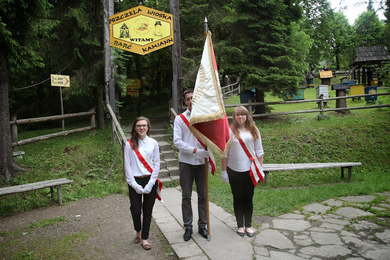 Ostatnie dni maja i początek czerwca klasa III a gimnazjum spędziła na wycieczce pszczelim szlakiem. Odwiedziła zaprzyjaźnionych pszczelarzy oraz miejsca związane z pszczelarstwem na Ziemi Sądeckiej. Pierwszym przystankiem na szlaku było Przedsiębiorstwo Huzar w Nowym Sączu, gdzie uczniowie zapoznali się z procesem technologii konfekcjonowania miodu i przeygotowania go do sprzedaży na skalę przemysłową. Mieli także okazję spróbować pysznych kremów miodwych produkowanych przez firmę Huzar, a przedsiębiorstwo opuścili obdarowani słodkimi prezentami: kremami miodowymi oraz miodami z różnych zakątków świata. Następnie udali się do Stróż, gdzie odwiedzili Gospodarstwo Pasieczne "Sądecki Bartnik" i mogli pochwalić się swoją wiedzą pszczelarską podczas zwiedzania skansenu i pasieki. Ostatnim miejscem wycieczki była Kamianna, gdzie uczniowie spędzili dwie noce w gościnnym Domu Pszczelarza. Górskie powietrze i piękne krajobrazy sprzyjały relaksowi. W Kamiannej uczestniczyli w Majówce Pszczelarskiej w Pasiece "Barć" im. ks. dra Henryka Ostacha, a gosodarz pasieki – pan Jacek Nowak wspaniale opowiadał o pszczołach i pracy w pasiece, a także zademonstrował bogatą kolekcję zabytkowych uli i galerię figur św. Ambrożego. Atrakcją wyjazdu była także podróż na Słowację, do Bardejowa, gdzie uczniowie skorzystali z możliwości kąpieli w wodach mineralnych. Ostatni dzień wycieczki przeznaczony był na zwiedzanie Krynicy-Zdroju. Góra Parkowa i zjeżdżalnie, przejazd kolejką, woda ze źródła Zuber dopełniły atrakcji wyjazdu.