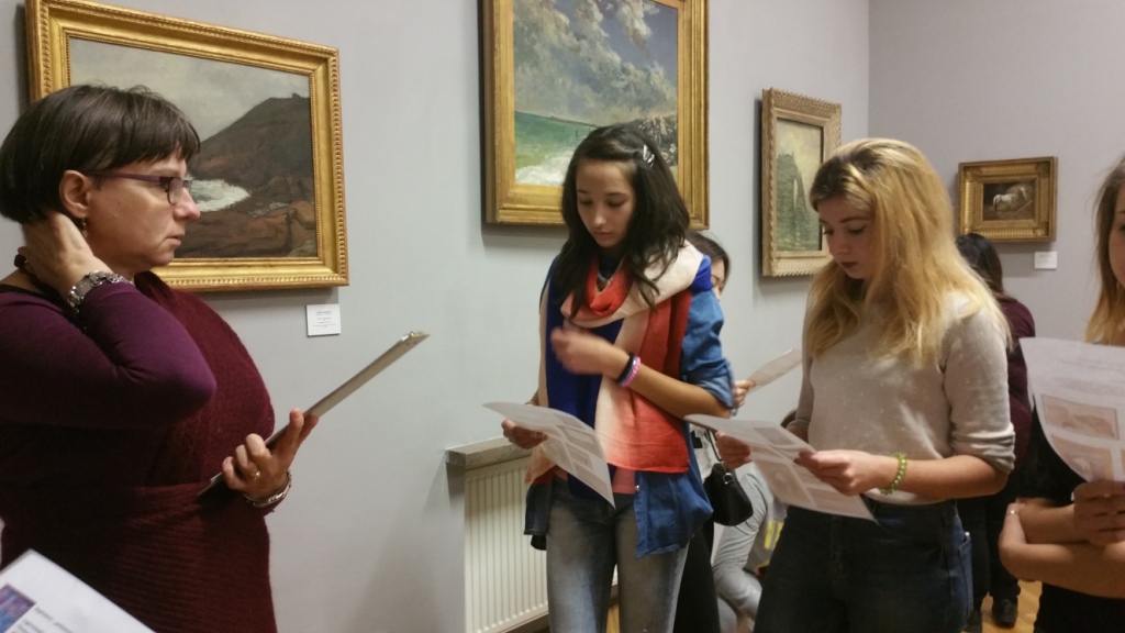 Wycieczka kl. I B TŻ do Muzeum Lubelskiego w Lublinie na wystawę „Monet, Renoir, Corot i inni. Malarze Normandii” – 19 października 2016 r. „Monet, Renoir, Corot i inni. Malarze Normandii” – to tytuł kolekcji obrazów, którą odwiedzili nasi uczniowie z klasy I B Technikum Żywienia i Usług Gastronomicznych. Podczas lekcji muzealnej mieli okazję podziwiać niezwykłe pejzaże normandzkiej wsi i normandzkiego wybrzeża, osadzone w tradycji romantycznego naturalizmu i obdarzone kontemplacyjnym charakterem krajobrazu. Opiekę nad młodzieżą sprawowała p. prof. Ewa Tomczyk – wychowawca klasy.