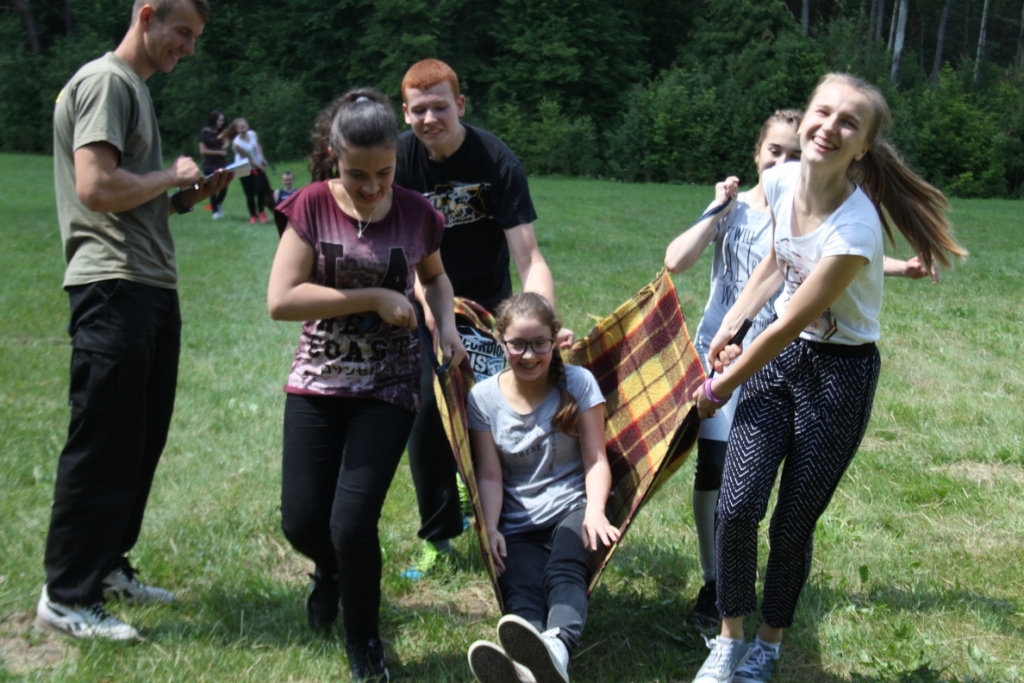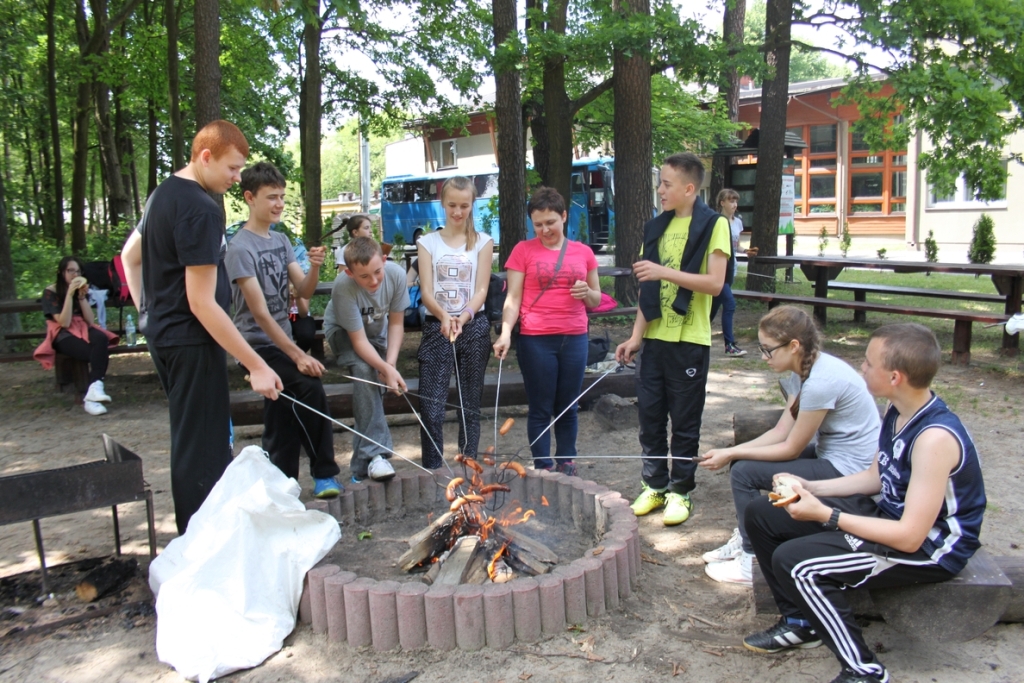 15 czerwca klasa 1 B Gimnazjum pod opieką p. I. Kępy i p. R. Pastuchy wyruszyła na wycieczkę do Janowa Lubelskiego. Nasz pobyt w Lasach Janowskich rozpoczęliśmy od wspinaczki w Parku Linowym, jednym z największych w Polsce. Po przeszkoleniu każdy mógł spróbować swoich sił na trzech trasach o różnych stopniach trudności: niebieskiej i zielonej tzw. średnich oraz czerwonej, najtrudniejszej. Następnie podczas „wesołej olimpiady” rywalizowaliśmy w 4 -osobowych grupach w różnych konkurencjach np. 4 – osobowe narty, 4- osobowe spodnie, wyścig chomików, bolkowe narty czy przeciąganie liny. Chwilę odpoczynku przyniosło nam wspólne pieczenie kiełbasek przy ognisku. Z kolei wielu emocji dostarczył konkurs strzelecki. Każdy z uczestników mógł sprawdzić swoją celność i precyzję strzelając z łuku tradycyjnego i sportowego, broni gładkolufowej typu „snajperka” czy broni pneumatycznej krótkiej typu „glock”. Podczas marszu na orientację mogliśmy się wykazać pomysłowością, umiejętnością czytania map, posługiwania się kompasem, orientacji