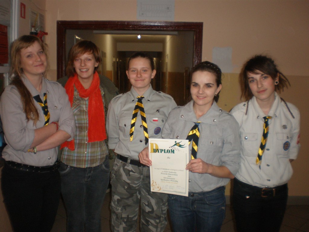Harcerze z drużyny „Optimum” pod opieką p. Anny Pulikowskiej-Niećko wyruszyli do Świdnika, by podbić serca publiczności i zintegrować się z drużynami z Hufca Lublin. 26 listopada 2011r. odbył się tam XXV Festiwal Piosenki Harcerskiej oraz XX Jesienne Spotkania z Piosenką „Złoty Polski Przebój” zorganizowane 24 Świdnicką Drużynę Harcerską „Żywioły”. Nasza drużyna reprezentowana była przez Magdę Sygnarską (gitara i wokal) oraz wokalistki: Karolinę Kozik, Kasię Wawrzecką, Natalię Gąbkę i Anię Liszkę. Wróciłyśmy z uśmiechami na twarzach i zwycięstwem. Karolina Kozik wywalczyła pierwsze miejsce na Festiwalu piosenką „Rysa na szkle” otrzymaliśmy dyplom i bony pieniężne do zrealizowania w salonach EMPIK. Satysfakcja jest ogromna, bo jak stwierdzili sami organizatorzy poziom był bardzo wysoki i liczba uczestników imponująca (32 drużyny).