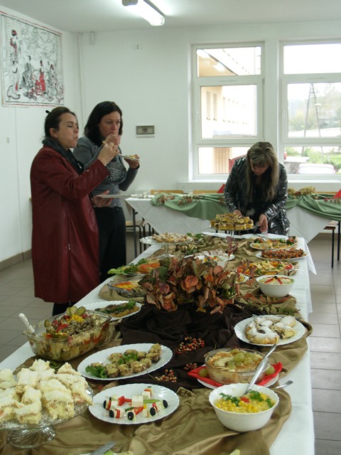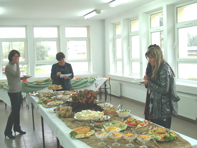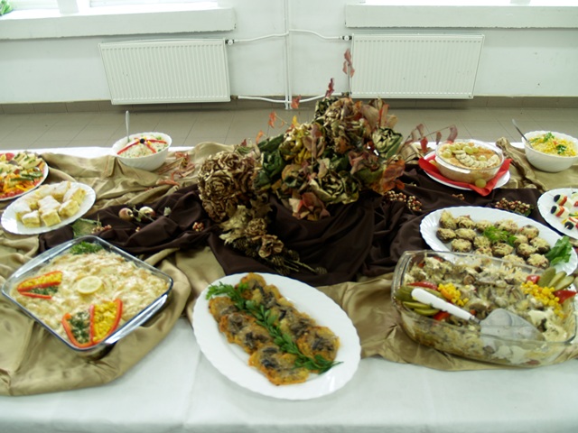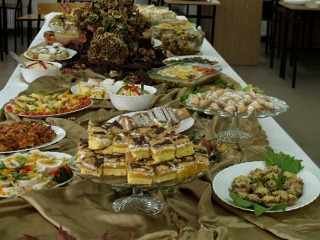 Już od kilku lat tradycją w naszej szkole jest, że uczniowie klas żywieniowych po zakończeniu praktyk zawodowych odbywanych w wakacje popisują się przed swoimi kolegami i nauczycielami nowo nabytymi umiejętnościami kulinarnymi. Tak też było i w tym roku. Na jednym z pierwszych zajęć praktycznych przystąpili do pracy i zaskoczyli wszystkich różnorodnością wykonanych przez siebie potraw. Były dania mięsne, z drobiu, przekąski, a także coś na słodko. Wszystko pięknie udekorowane i wystawione do degustacji na efektownie i ze smakiem nakrytym stole ozdobionym jesienną kompozycją z liści. Potrawy wyglądały pięknie i smakowały równie dobrze. Uczniom klasy III TŻ serdecznie gratulujemy i życzymy dalszego rozwijania swoich zainteresowań kulinarnych.
