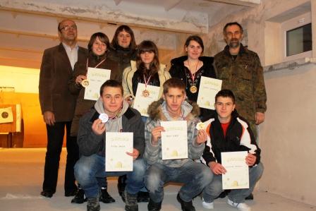 Grupa dziewcząt i chłopców rywalizowała o medale i tytuł mistrza. W kategorii dziewcząt pierwsze miejsce i złoty medal zdobyła Natalia Gąbka, drugie miejsce i srebrny medal Joanna Sułowska, a miejsce 3 i brązowy medal Karolina Kozik. W kategorii chłopców najcelniej strzelał i wywalczył złoty medal Paweł Rubaj, srebro i 2 miejsce przypadło Piotrowi Zarębie, a brąz zdobył Artur Dąbrowski. Tuż za podium na czwartym miejscu uplasował się Wojciech Matacz. Wszyscy otrzymali pamiątkowe dyplomy i nagrody niespodzianki w postaci pudełek śrutu do wiatrówek, który będą mogli wystrzelać podczas zajęć sekcji strzeleckiej w każdy poniedziałek w godzinach 14:30-16:30. Pan Romuald Witamborski zaprasza także inne osoby zainteresowane strzelectwem sportowym na zajęcia sekcji, by ćwiczyć umiejętności strzeleckie. Warto doskonalić swoje umiejętności strzeleckie, gdyż już niedługo, wczesną wiosną są planowane kolejne zawody strzeleckie, podczas których będziemy mogli przekonać się, czy aktualni mistrzowie obronią swoje tytuły.