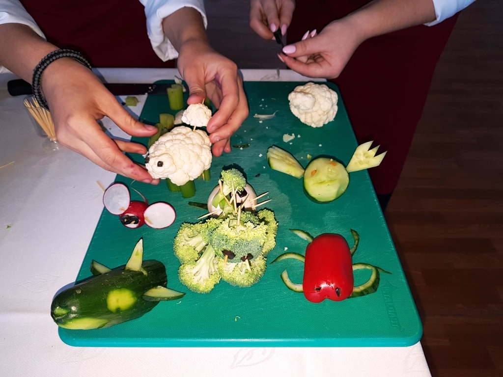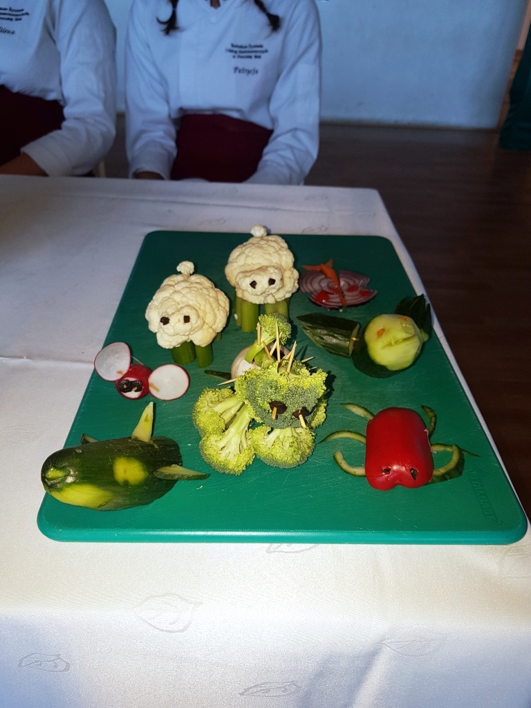 Z niełatwym zadaniem musiały zmierzyć się nasze uczennice podczas ostatniego konkursu kulinarnego, który odbył się 10 października w Zespole Szkół Ponadgimnazjalnych w Niemcach, a mianowicie wykazać się pomysłowością w wykonaniu zwierzątek z … warzyw. Z takim wyzwaniem zmierzyły się uczennice klasy III B Technikum Żywienia i Usług Gastronomicznych: Patrycja Kowalczyk i Milena Żmudziak. Wykonały szereg ciekawych figurek przedstawiających: rekina, baranki, myszki, itp. Prace naszych uczennic spotkały się z pozytywną oceną jury, które uhonorowało je pierwszym miejscem w konkursie. Patrycji i Milenie gratulujemy i życzymy dalszych sukcesów.